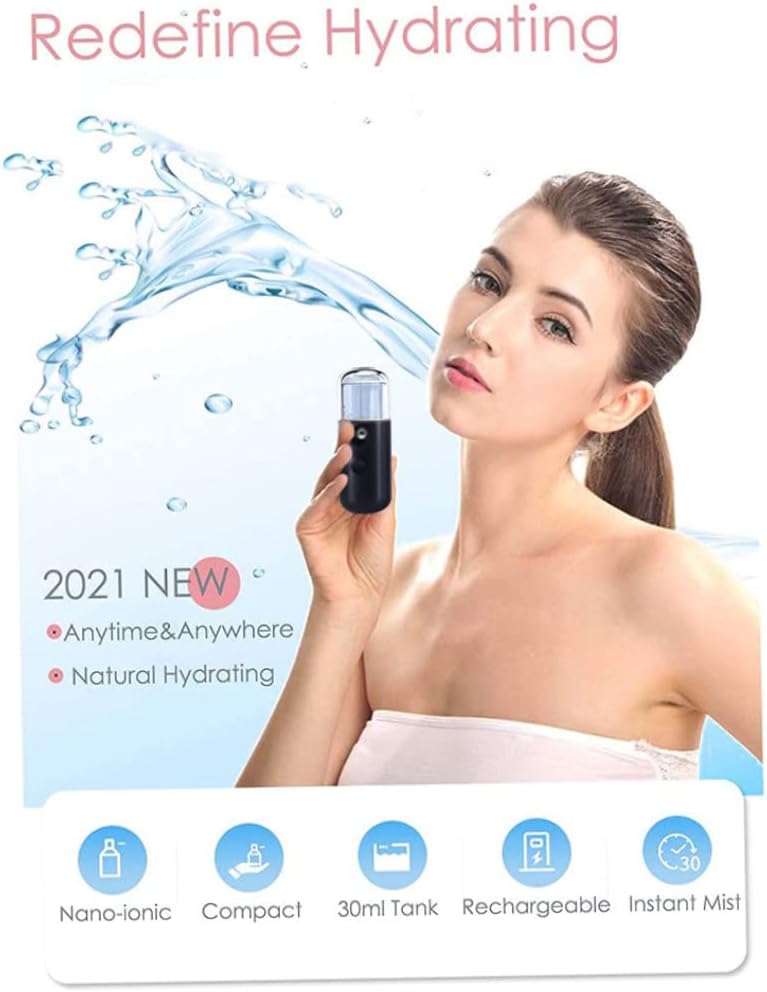 Portable and compact design: with its compact size of 10 x 4 x 4 cm, this mini water mist is your ideal travel companion. Put it in your bag, backpack or pocket and enjoy instant hydration of the skin wherever you go.