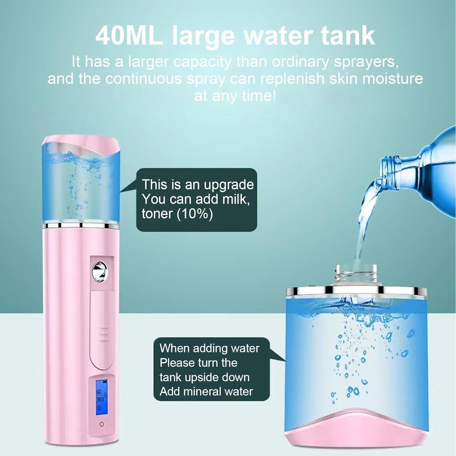 Face Mister Skincare Tool – Nano Face Mist Sprayer | 40 Ml Draagbare Gezichtsmist Handige Sproeier |Hydraterende Handheld Nano Facial Mister met Huidanalyse | USB Oplaadbare Facial Steamer voor Ey