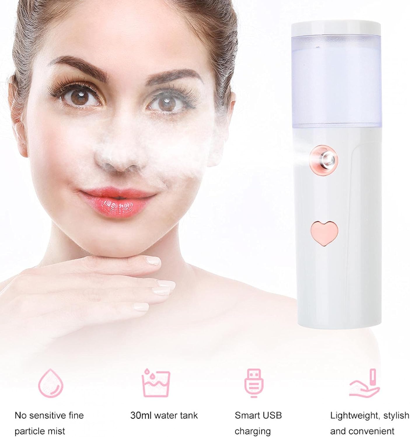 Face Mister, USB Oplaadbare Handheld Draagbare Cool Mist Facial Steamer Handige Mistspuit Gezicht Mini Travel Gezichtsbevochtiger Verstuiver met 30 ml watertank(Wit)