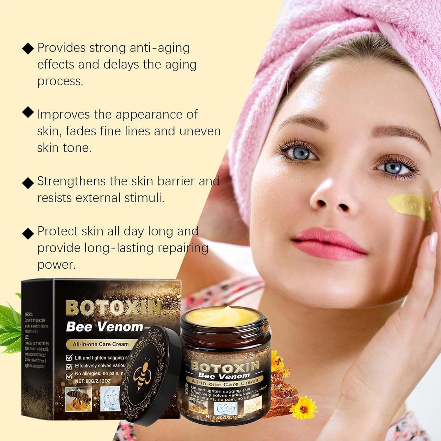 Face Moisturizer, Bee Firming Cream, Hydrating Firming Nourishing Lifting Care Moisturizer, Ideal for Women Men All Skin Types, Daily Skin Care Routine