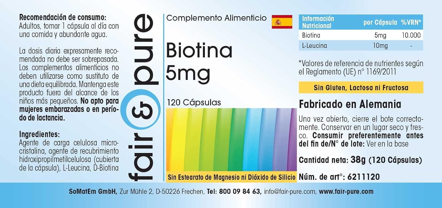 Fair & Pure® – Biotine 5mg – 120 veganistische capsules – hoog gedoseerd en biobeschikbaar – Duitse kwaliteitsproductie – Fair & Pure