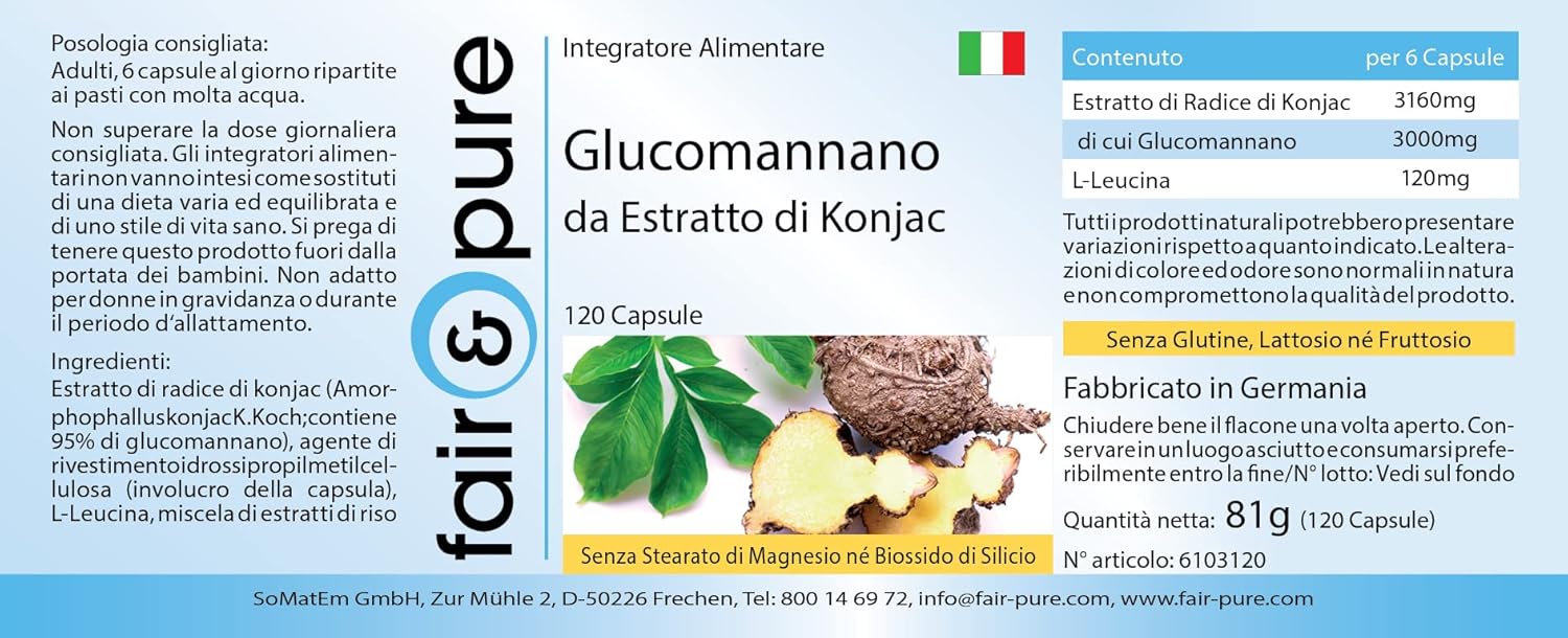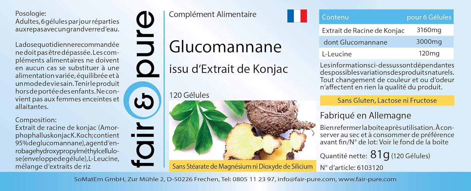 Voor uw gezondheid: Glucomannaan 500mg van konjakwortel extract, 120 capsules – Het product is glutenvrij, fructosevrij en lactosevrij en vrij van magnesiumstearaat, siliciumdioxide, kleur- en smaakstoffen en conserveringsmiddelen