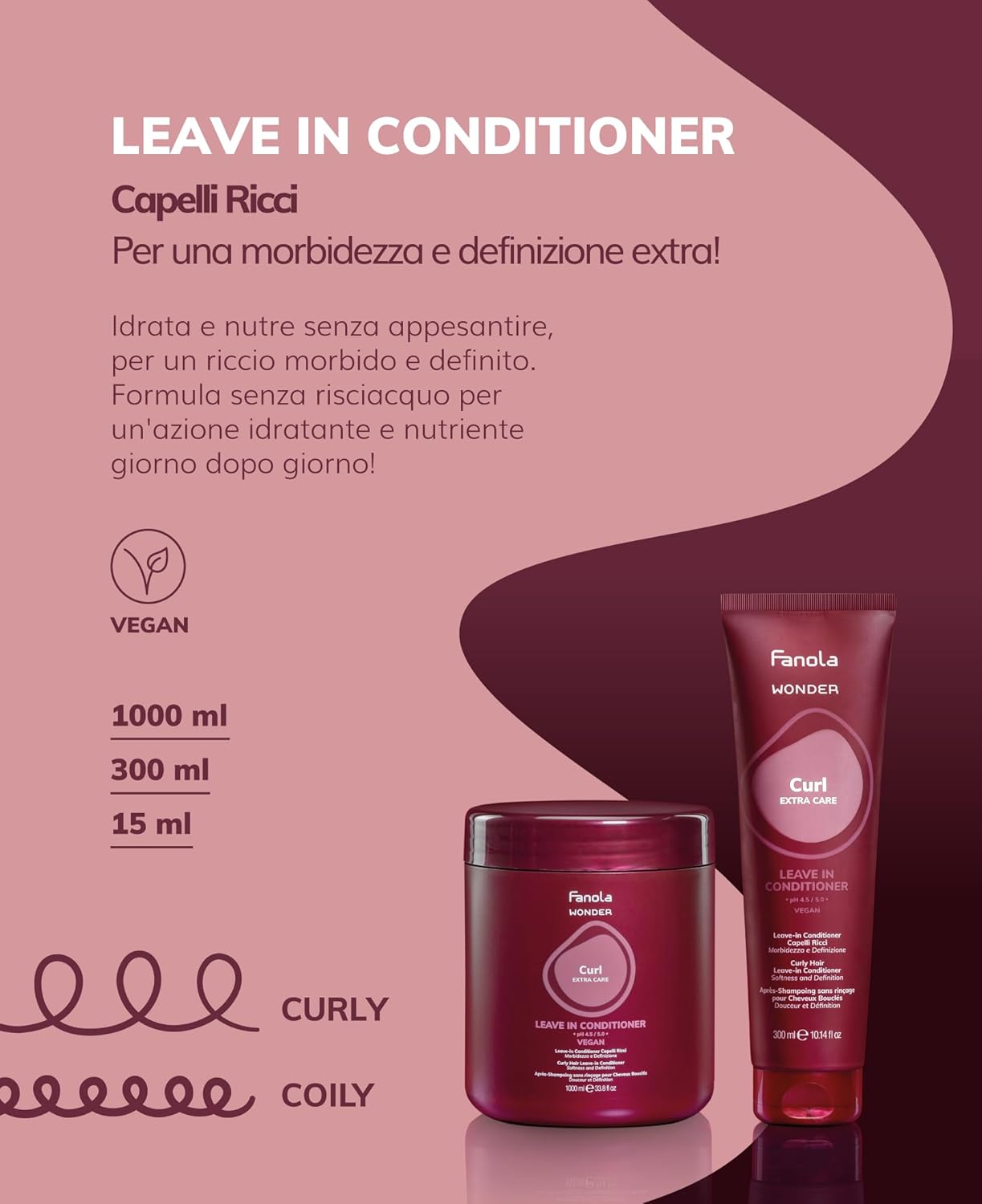 Fanola Wonder Curl Leave-In Conditioner 1000ml – balsamo leave – in capelli ricci Conditioner senza risciacquo, apporta nutrimento e idratazione intensi senza appesantire.Disciplina e controlla i capelli rendendo il riccio morbido e definito.