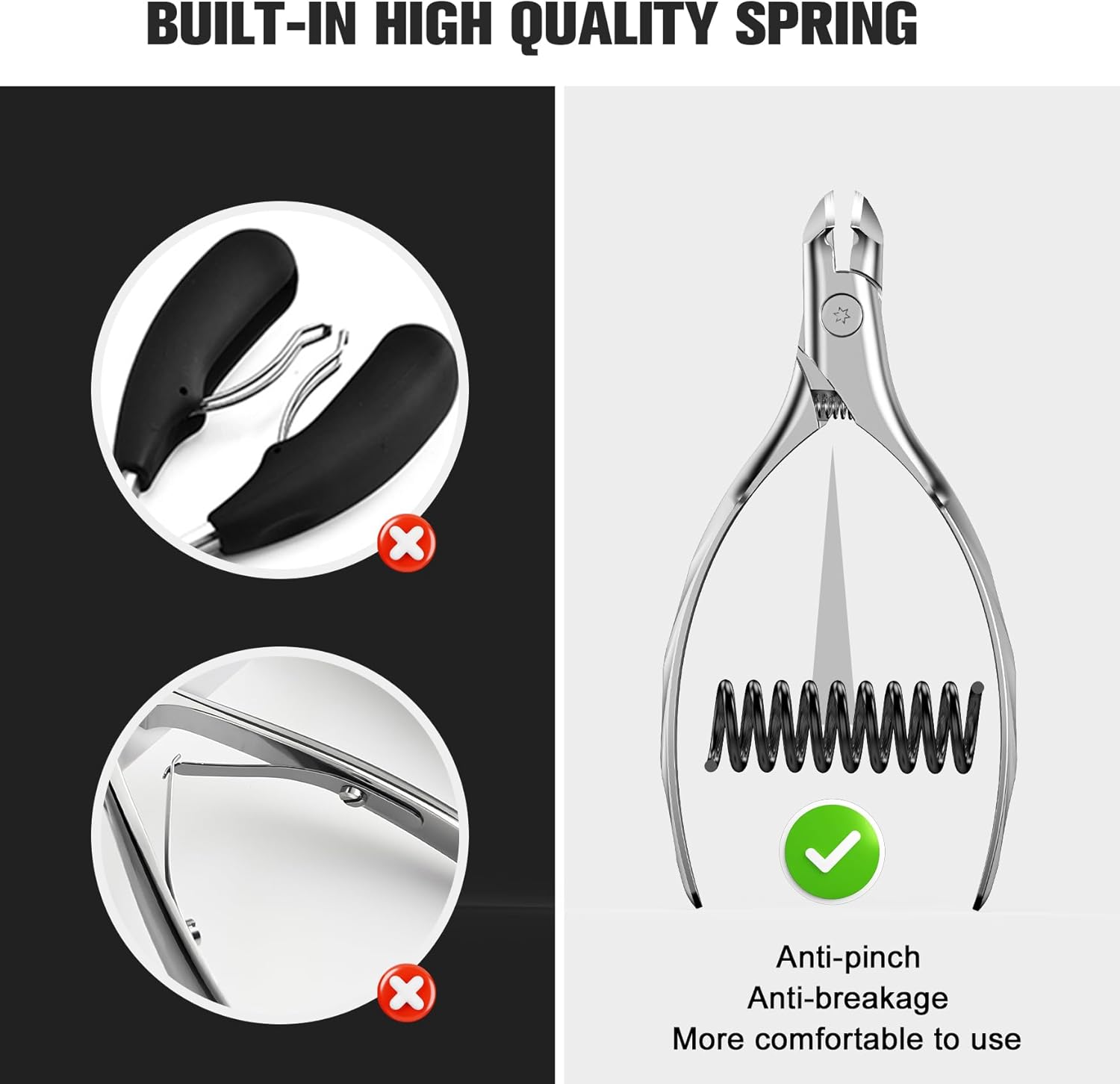 Our toenail clippers also feature a built-in spring mechanism, making cutting effortless and accurate. No more struggling with stubborn nails.