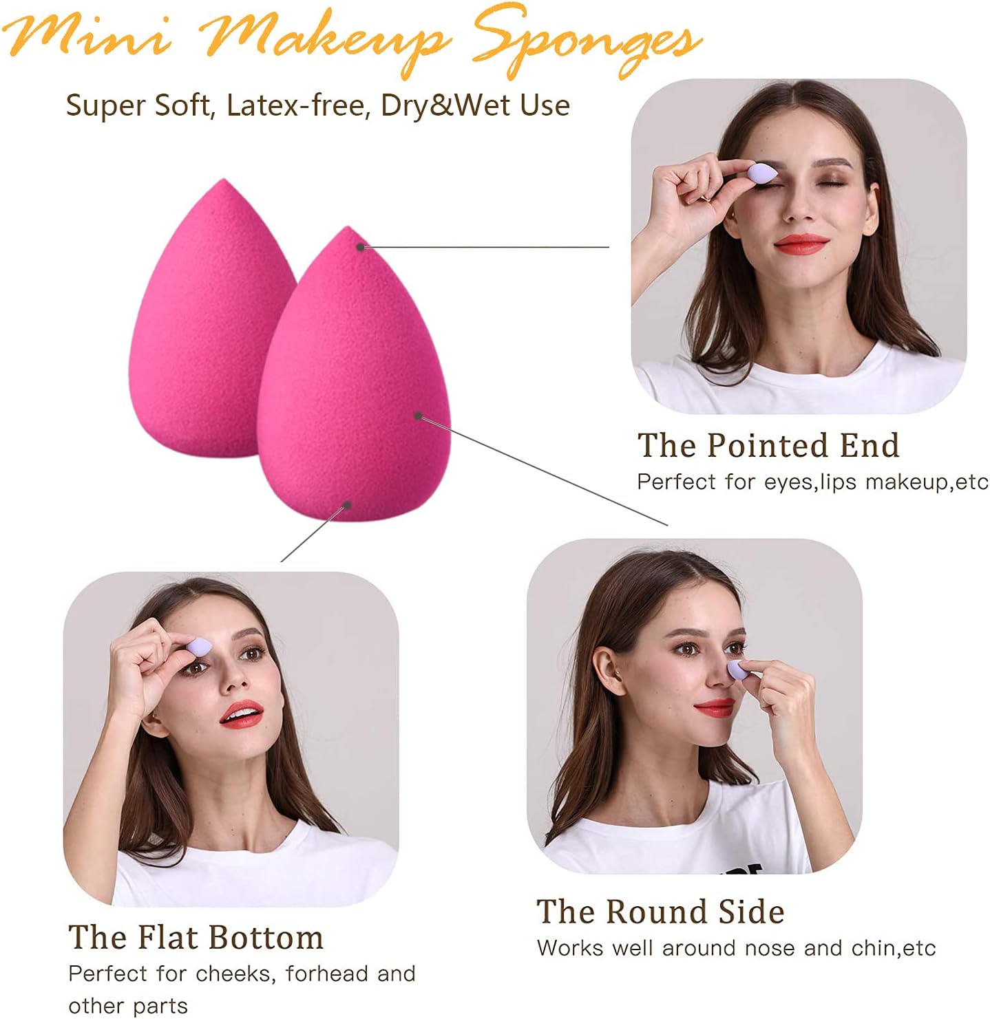 2 stuks mini-make-upspons — Gemaakt van niet-latexschuim om allergieën te verminderen en gemakkelijk schoon te maken. Het is perfect voor het bestrijden van oneffenheden en het contouren van sommige kleine delen van neus, ogen, om te voorkomen dat veel cosmetica wordt verspild.