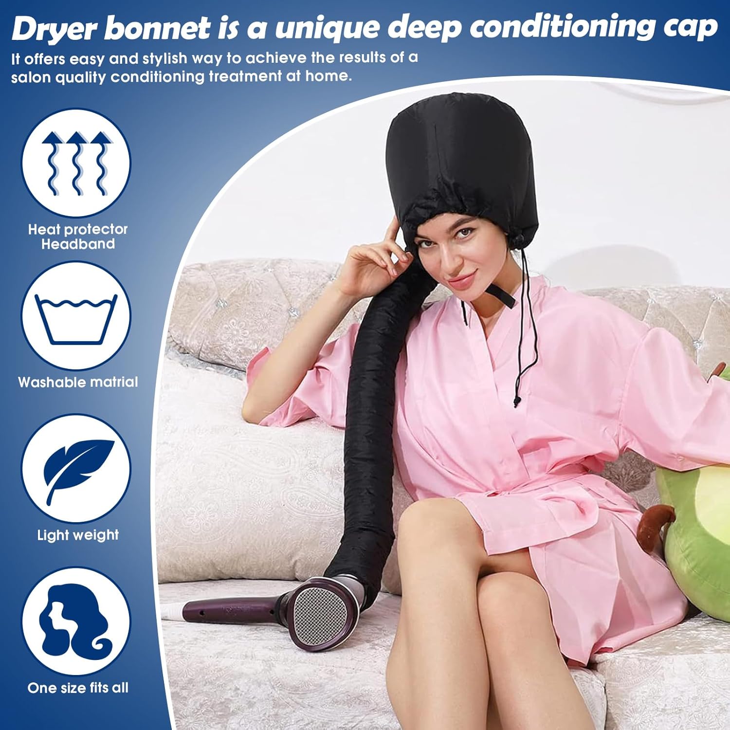 Föhn Droogkap voor haar, 2 stuks, draagbare haarkap met verstelbaar trekkoord voor alle hoofden en haarmaten, voor het drogen, verwarmen, stylen (A)