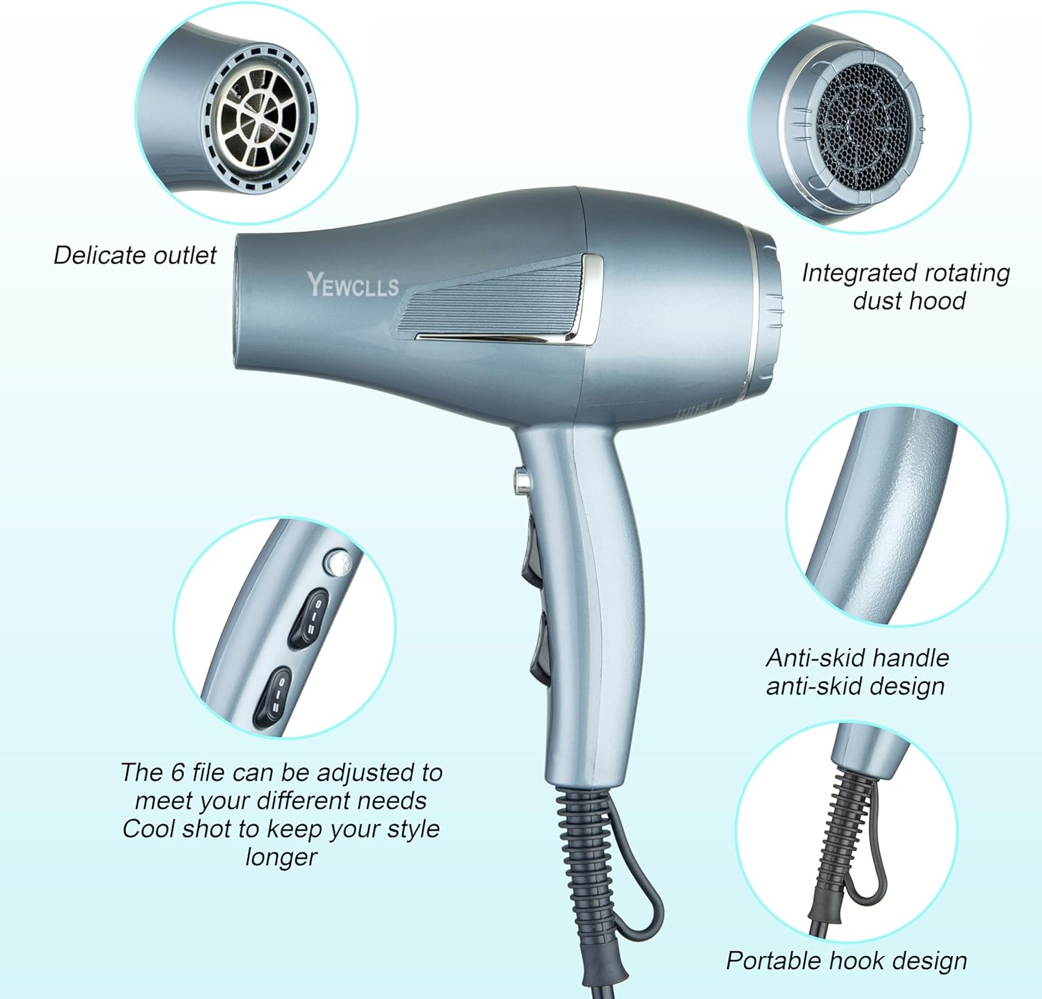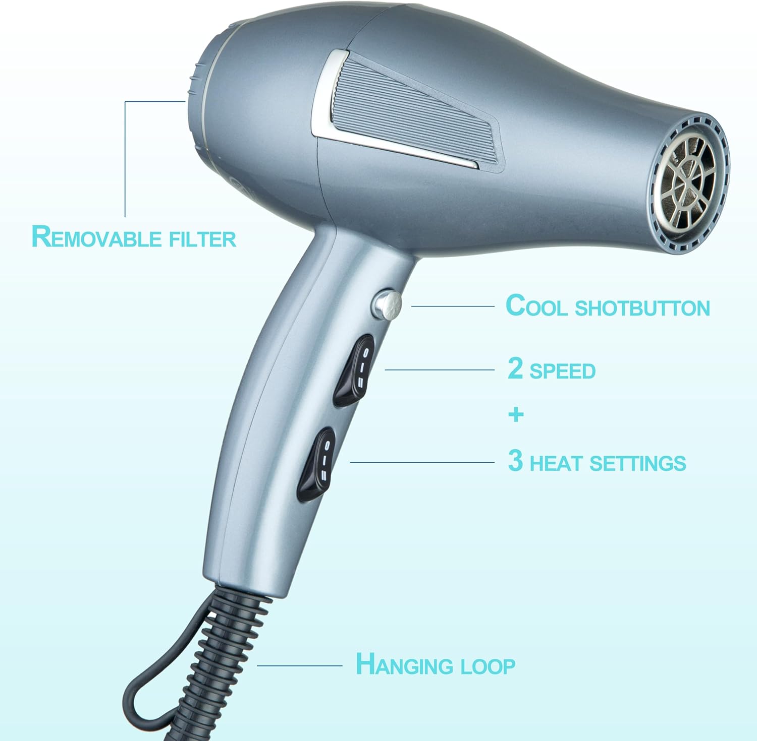 Krachtige en betrouwbare haardroger van 2100 W: professionele ionenföhn, met een vermogen van 2100 watt, uitgerust met een krachtige AC-motor, een licht, groot luchtvolume en kan snel en comfortabel worden gedroogd. 3 temperatuurinstellingen en twee windsnelheden om je favoriete stijl en kammen te creëren. Het duurzame ontwerp zorgt voor een langere levensduur.