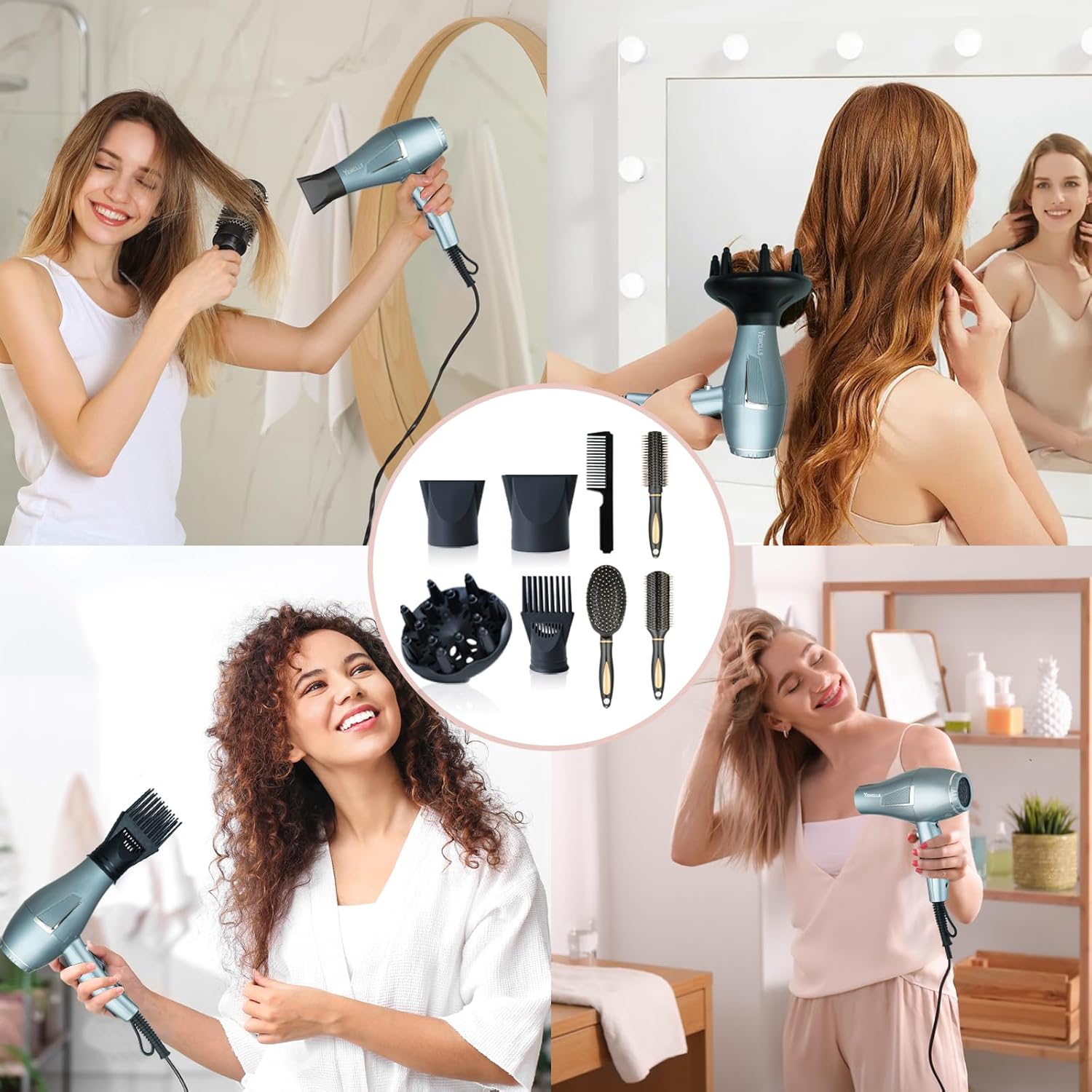 Gesamtbewertung:Der Föhn mit 2100 Watt hat meine Erwartungen übertroffen. Ich habe ihn für schnelles Trocknen und vielseitiges Styling gekauft. Dank seiner starken Leistung und durchdachten Features ist er ideal für den täglichen Einsatz und professionelle Ergebnisse geeignet.Positive und negative Aspekte:Positiv:Leistungsstarke Trocknung durch 2100 Watt und Wechselstrommotor.Ionen-Technologie für glänzenderes, geschmeidigeres Haar mit weniger Frizz.8 Zubehörteile, darunter Diffusor und Styling-Kämme, für vielseitige Frisuren.Ergonomischer Griff und 2,5 m Kabel bieten Komfort und Flexibilität.Negativ:Das Gerät könnte etwas leiser sein.Zubehör ist qualitativ durchschnittlich und nicht so langlebig wie der Föhn selbst.Relevante Details teilen:Die verschiedenen Heiz- und Gebläsestufen ermöglichen eine individuelle Anpassung. Der Föhn ist leicht und liegt angenehm in der Hand, auch bei längerer Nutzung. Die vielseitigen Aufsätze machen ihn für glattes, lockiges oder dickes Haar gleichermaßen geeignet.Konstruktive Kritik:Eine verbesserte Geräuschdämmung und hochwertigere Styling-Aufsätze würden das Gesamtpaket abrunden.Fazit:Ein hervorragender Föhn für schnelles Trocknen und präzises Styling. Perfekt für den Heimgebrauch oder unterwegs!