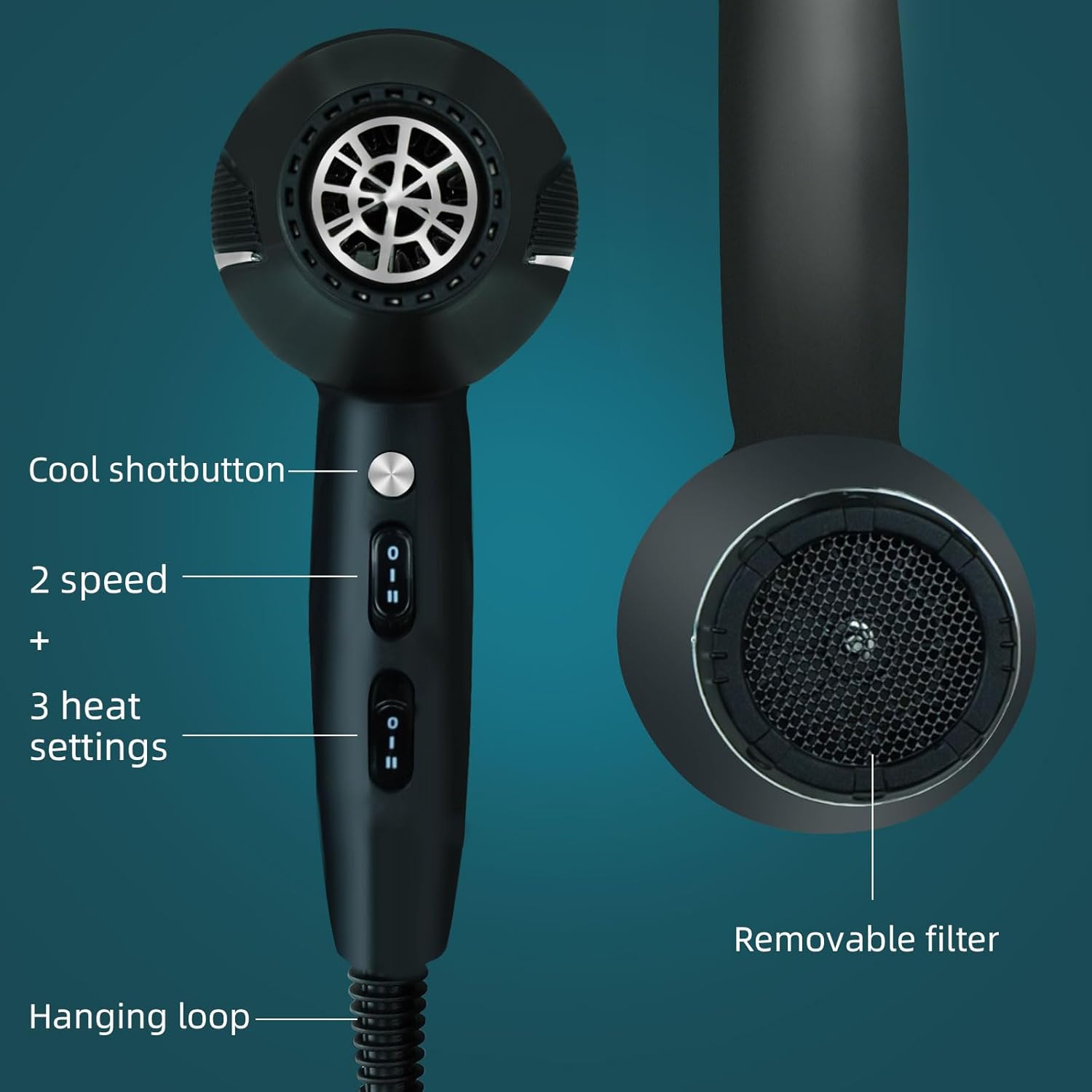 Krachtige en betrouwbare haardroger van 2100 W: professionele ionenföhn, met een vermogen van 2100 watt, uitgerust met een krachtige AC-motor, een licht, groot luchtvolume en kan snel en comfortabel worden gedroogd. 3 temperatuurinstellingen en twee windsnelheden om je favoriete stijl en kammen te creëren. Het duurzame ontwerp zorgt voor een langere levensduur.