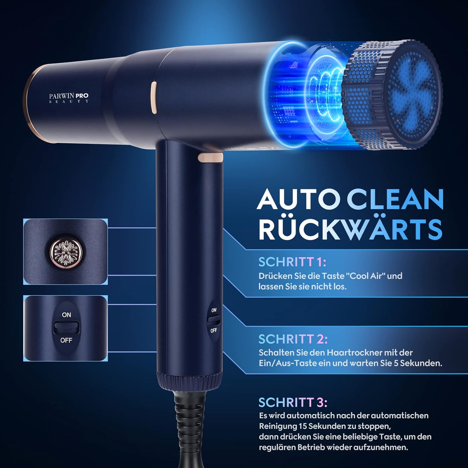 ✔【Ionen haardroger met intelligente temperatuurregeling】PARWIN PRO BEAUTY föhn met geïntegreerde microprocessor en temperatuursensor die de luchtuitlaattemperatuur met een hoge frequentie van 100 keer per seconde kan bewaken, voorkomt dat je haar door extreme hitte wordt beschadigd. Bovendien zullen 100 miljoen negatieve ionen tijdens het droogproces met de luchtstroom op je haar inwerken en het helpen zacht, glanzend en pluisvrij te worden.