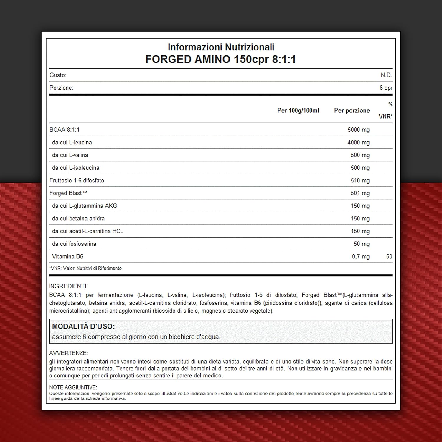 FORGED AMINO BCAA 8:1:1 – vertakte aminozuren BCAA 8:1:1 – Post-workout met glutamine – 150 tabletten