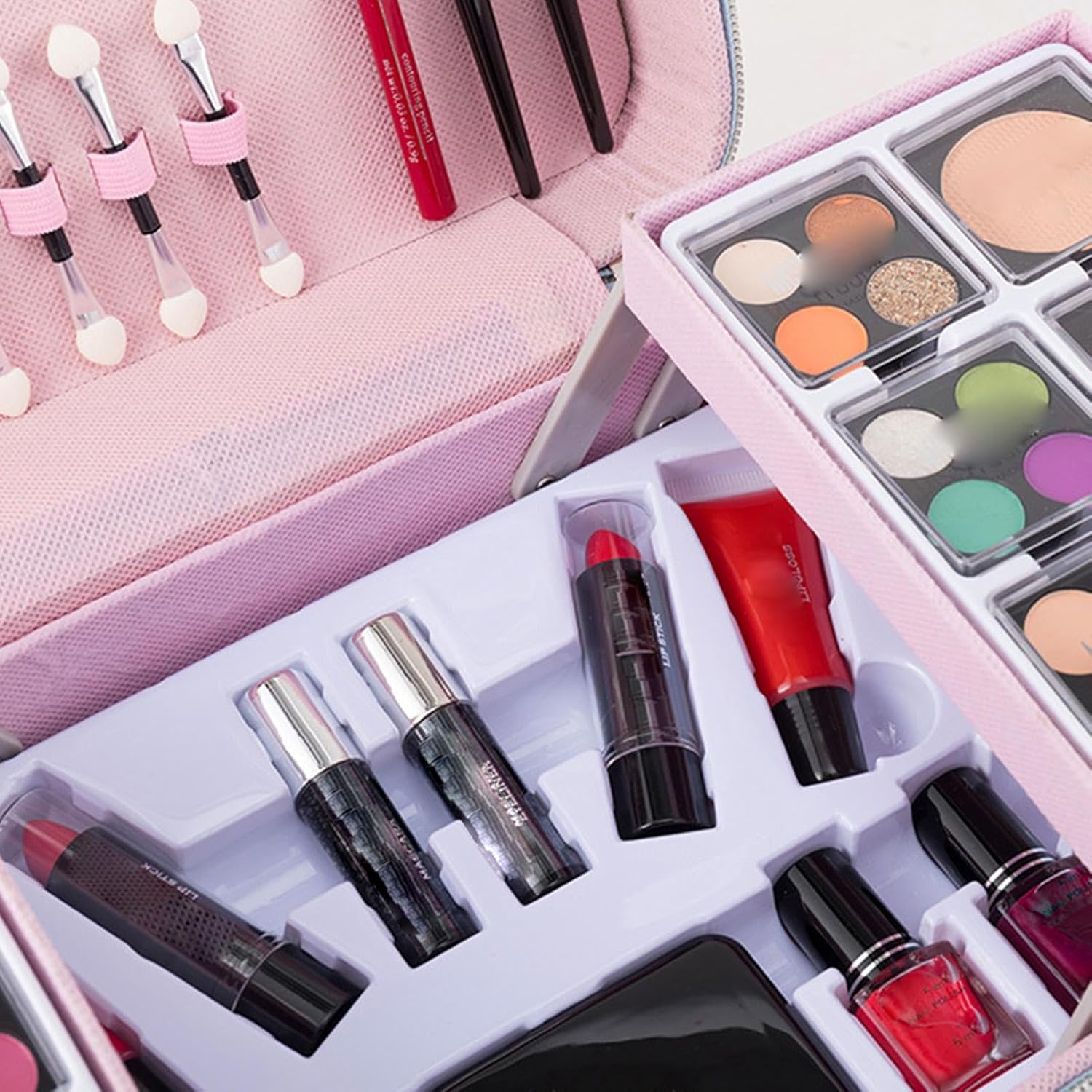 Comprehensive Kit for Every Look: Includes essential items for a makeup application: a variety of brushes, professional-grade lipsticks, and eye products in a convenient case. Ideal for makeup enthusiasts and professionals seeking a complete set for any occasion like parties, casual outings, or photoshoots