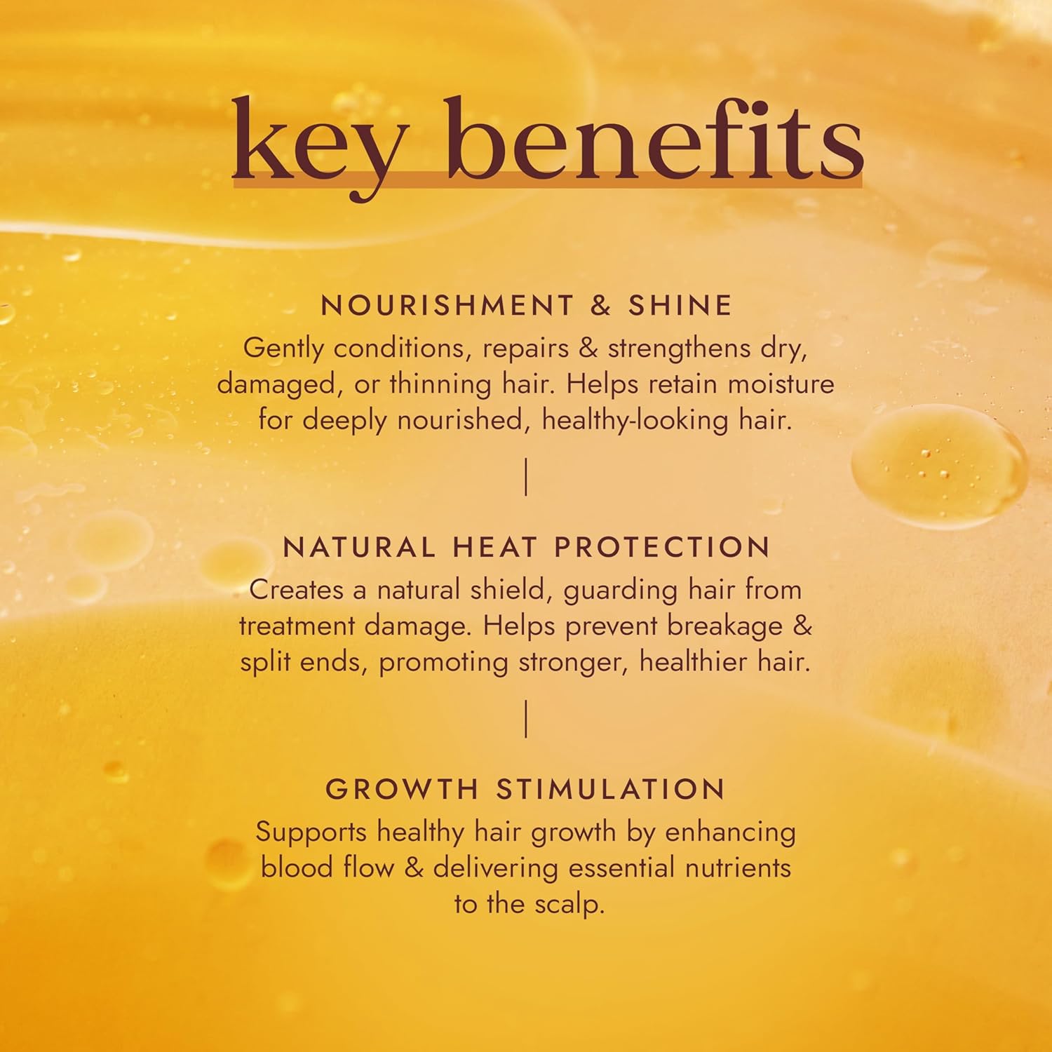 Love the smell. Made my hair look really healthy and shiny without looking greecy. Overall my hair looks healthy and has started to fall out a lot less now in a very short space of time. Maybe because of all the natural and healthy oils that are in the ingredients. Love it