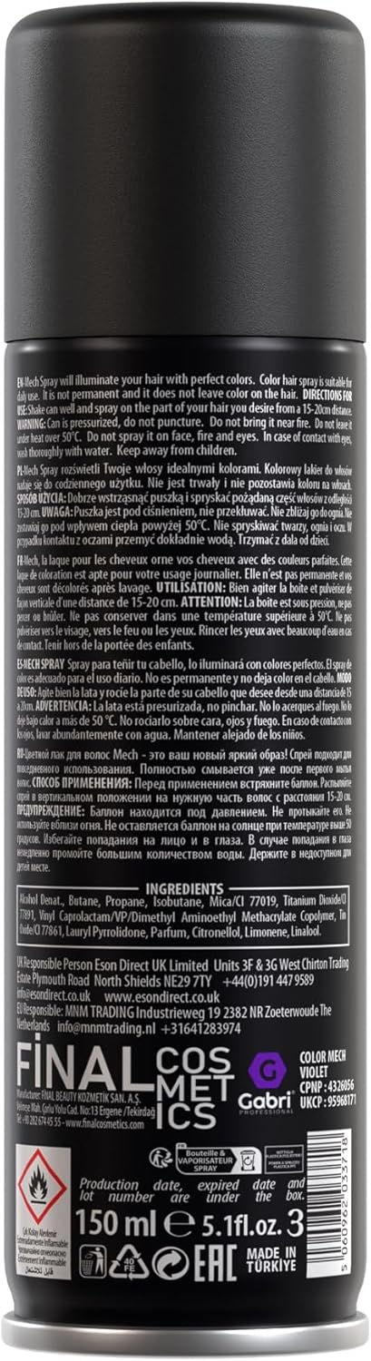 Gabri Color Spray 150 ml – haarkleurspray – haarkleur om op te spuiten – Pro Temporary Hair Colour Spray (paars, 150 ml (1 stuk)