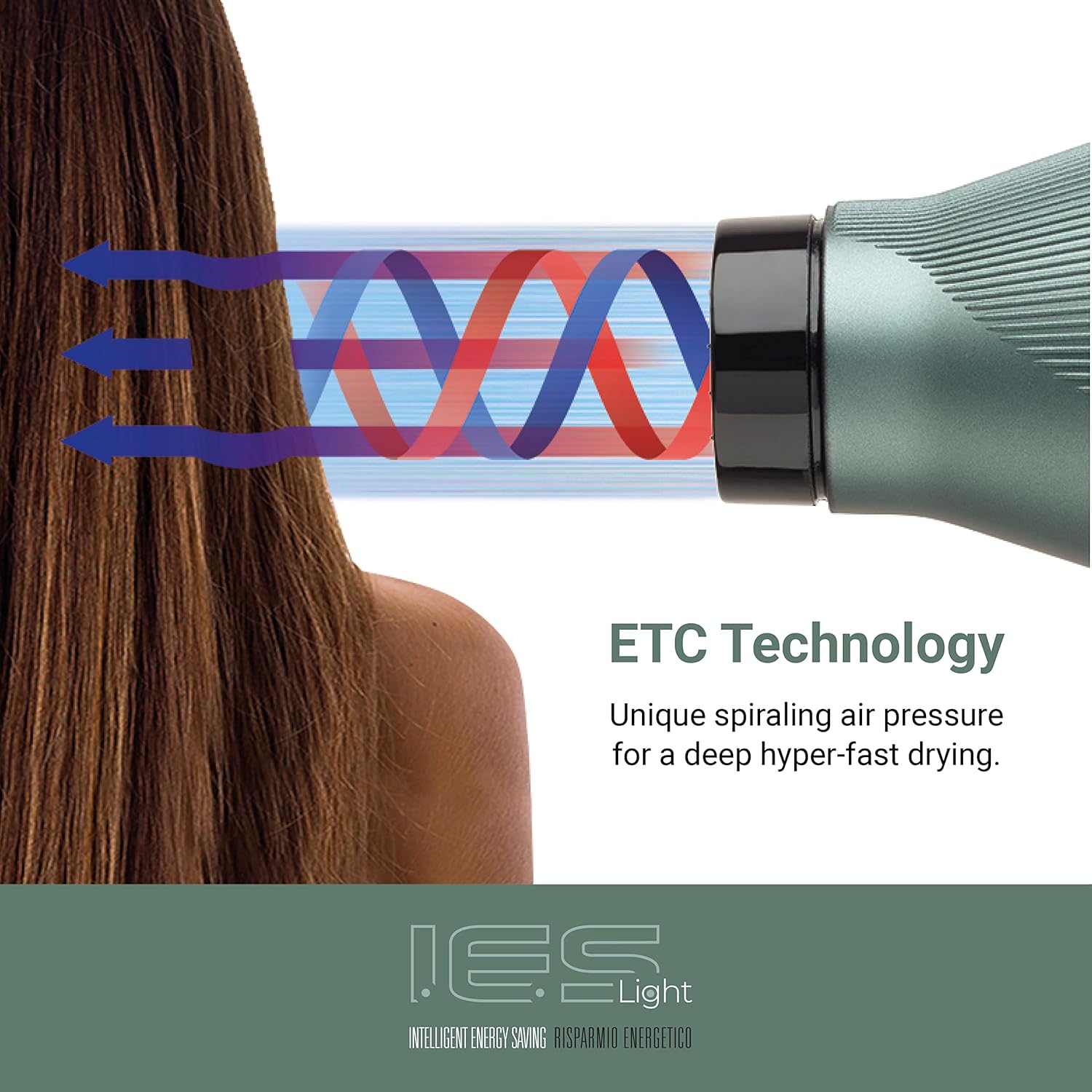 GAMMA PIU I.E.S Light, Professionele Föhn, Energiebesparende Föhn, Sneldrogend met ETC-technologie, 2 Snelheden / 3 Temperaturen. (MOSGROEN)