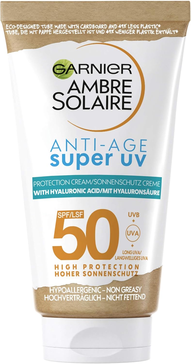 Inhoud: 1 x Garnier Ambre Solaire anti-Age uv-zonnecrème SPF 50, inhoud: 50 ml