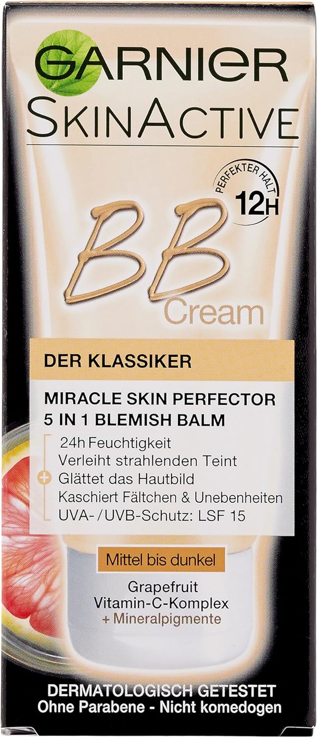The Garnier BB cream (Blemish Balm) is a 5-in-1 care that thanks to its special composition covers five skin needs with just one care. The Garnier BB Cream (Blemish Balm) combines optimal moisture care with mineral pigments and a vitamin C complex. It moisturizes for 24 hours, gives a radiant complexion, smoothes the skin, hides wrinkles and imperfections of the skin, and has a UVA-UVB protection SPF 15.