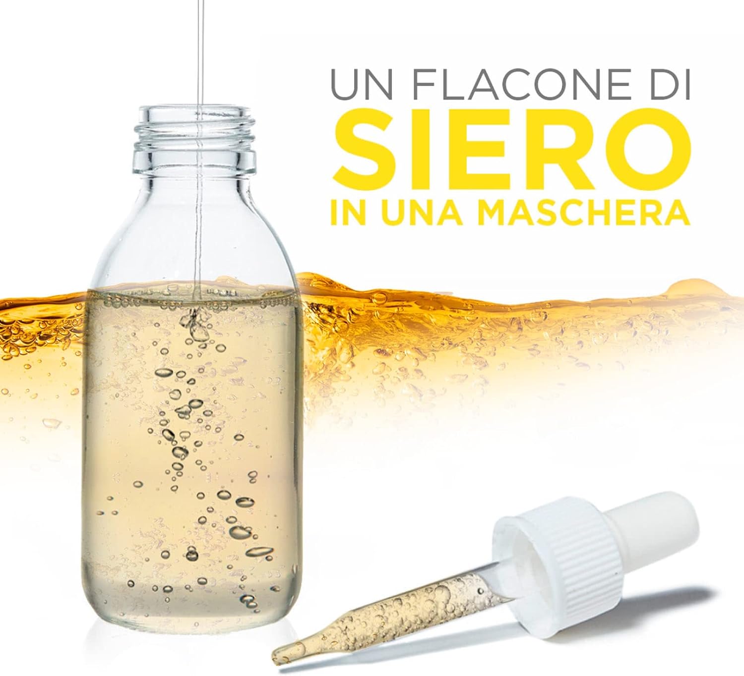 Stoffen masker gedrenkt in hydraterende en verhelderende lotion voor de behandeling van de gevoelige, oneffen huid. Hydrateert en revitaliseert de teint intensief en vermindert tekenen van vermoeidheid voor een direct stralende en egale teint. Veganistische formule verrijkt met een echte glans- en vochtbooster van vitamine C en hyaluronzuur, geweven van 100% natuurlijke cellulosevezels. Breng het masker aan op een gereinigd, droog gezicht en laat het 15 minuten intrekken. Verwijder het masker en masseer zachtjes het overtollige product weg.