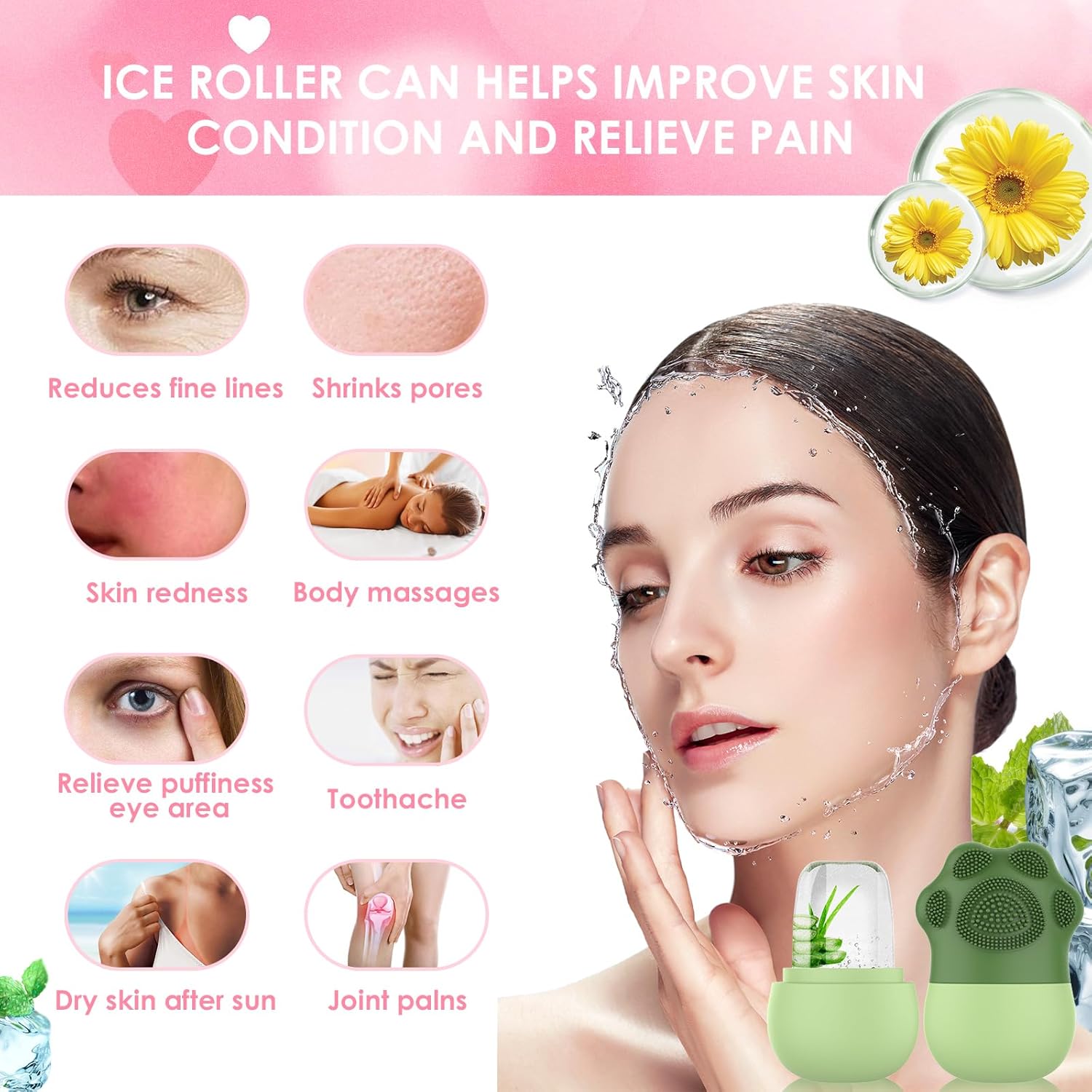 GeeRic IJsroller, siliconen reinigingsborstel, gezichtsmassage, gezichtsroller, huidversteviging, anti-aging, anti-rimpelversteviging, tegen donkere kringen, verlicht pijnlijke spieren