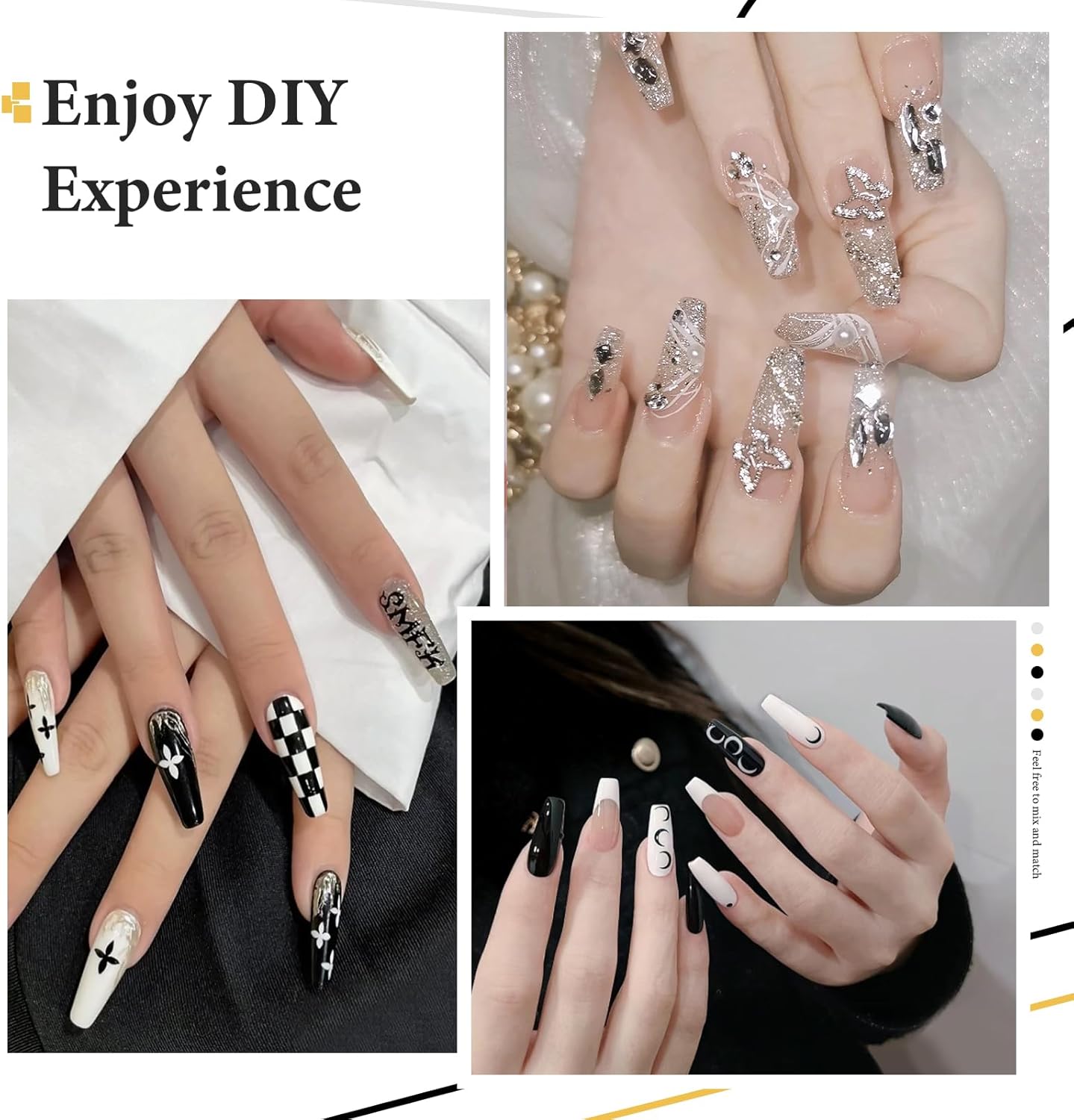 Koop de 4 kleuren uv-gelnagellakset, maak alle gewenste kleuren: de gelnagellakset bevat series in zwart, wit, goud en zilver. Met de basistoon kunnen alle kleuren worden gemaakt, met wit en zwart kan de toon worden veranderd. Glinsterend zilver en goud kunnen worden gebruikt om de nagels te versieren. Verschillende kleuren kunnen in vier seizoenen aan je verschillende nageldesign-eisen voldoen