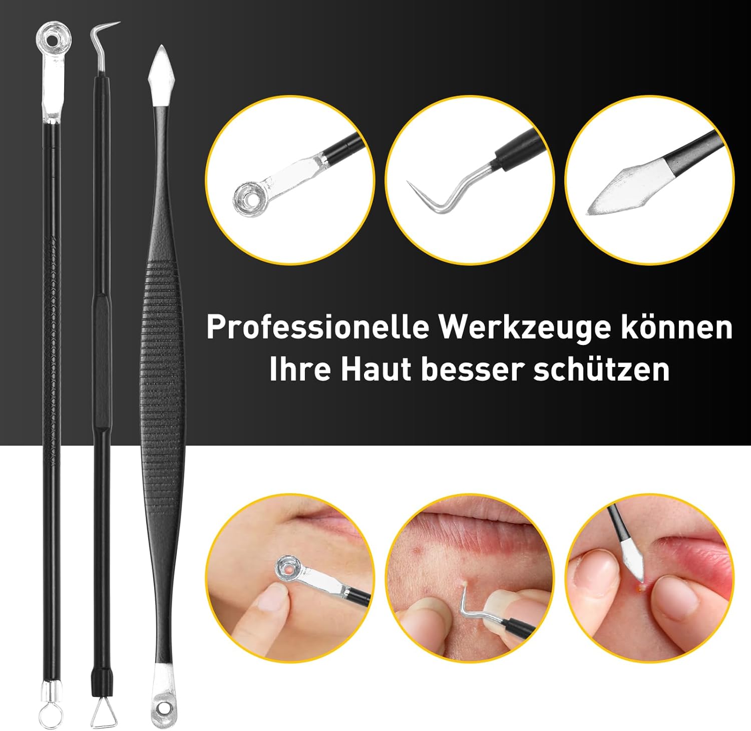 10-in-1: je ontvangt een zeer compacte opbergdoos van metaal, die 10 mee-eters verwijderingsgereedschappen met verschillende functies bevat