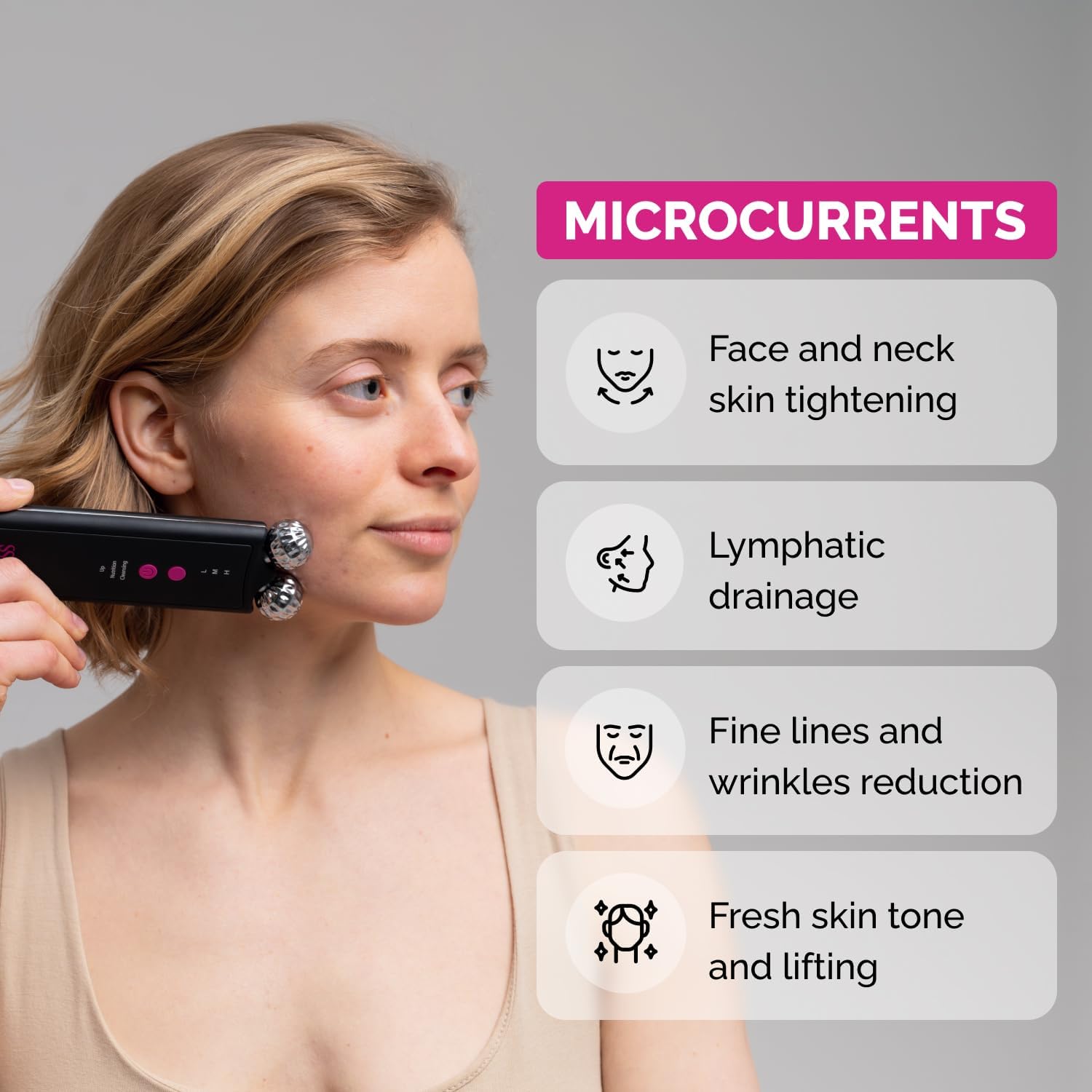 EMS voor facelifting:Bereik een gedefinieerde kaak en jukbeenderen met ons ems ems ultrasone huidreiniger. Het biedt elektrische impulsen die je gezichtsspieren verstevigen en strakker maken