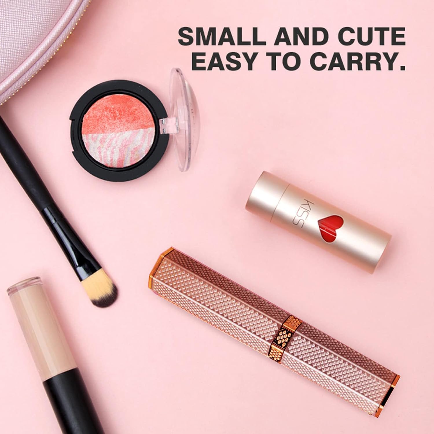 De lippenstiftstijl en het kleine formaat maken het gemakkelijk om mee te nemen in een tas.
