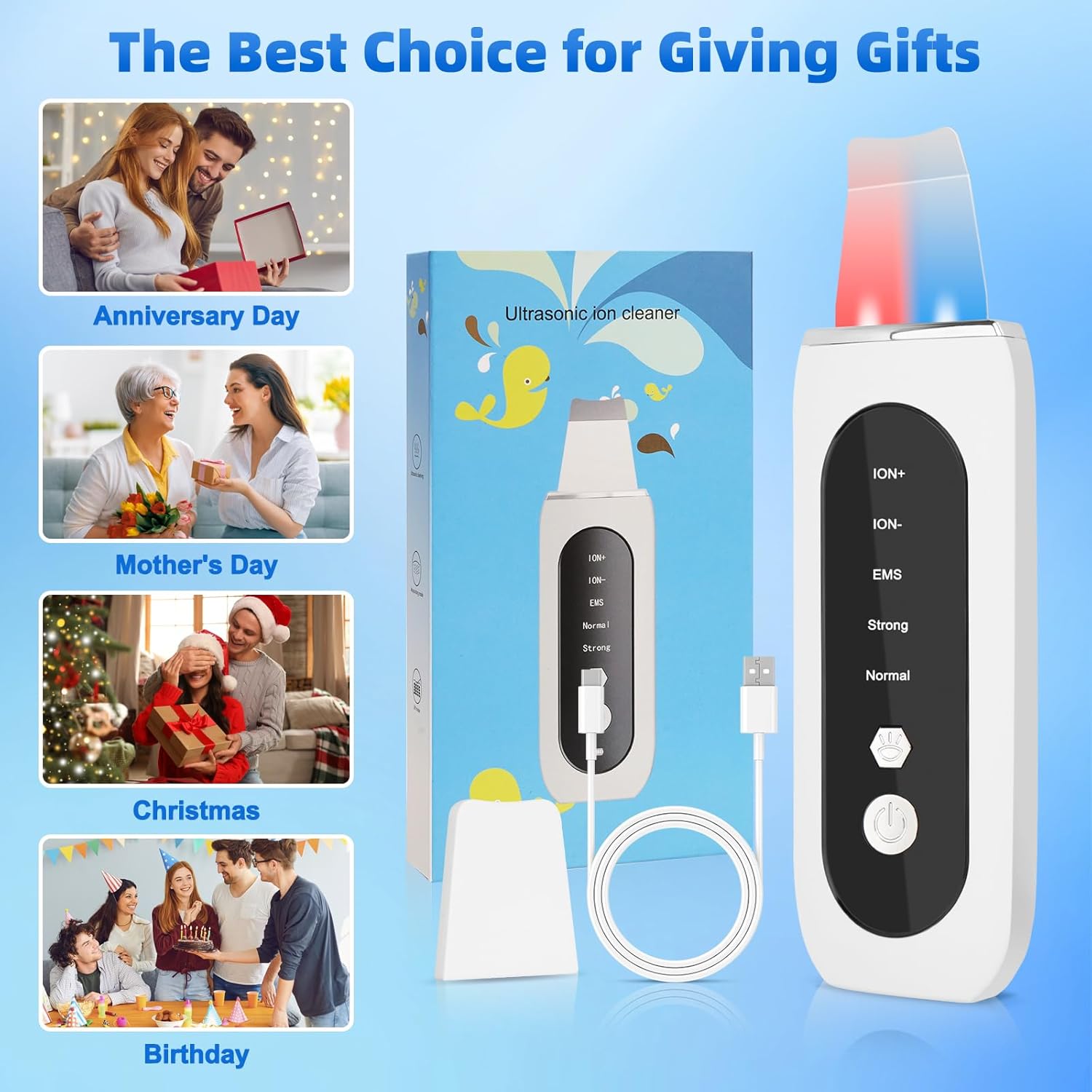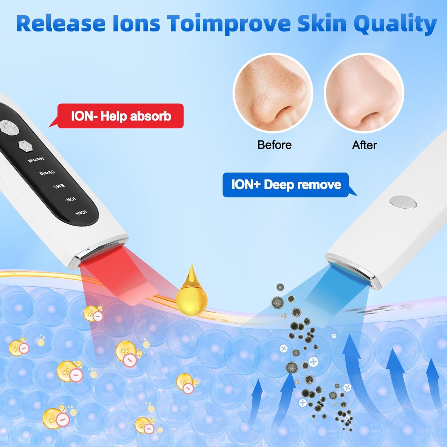 【Professionele gezichtsreiniger】Onze multifunctionele ultrasone huidreiniger geeft meer dan 26.000 ultrasone trillingen per minuut. De hoogfrequente ultrasone trillingen verbeteren de reinigingsprestaties, waardoor poriën effectief worden ontstopt en mee-eters, olie, dode huidcellen en andere onzuiverheden onder de huid worden verwijderd, waardoor je huid verfrist en vernieuwd wordt.