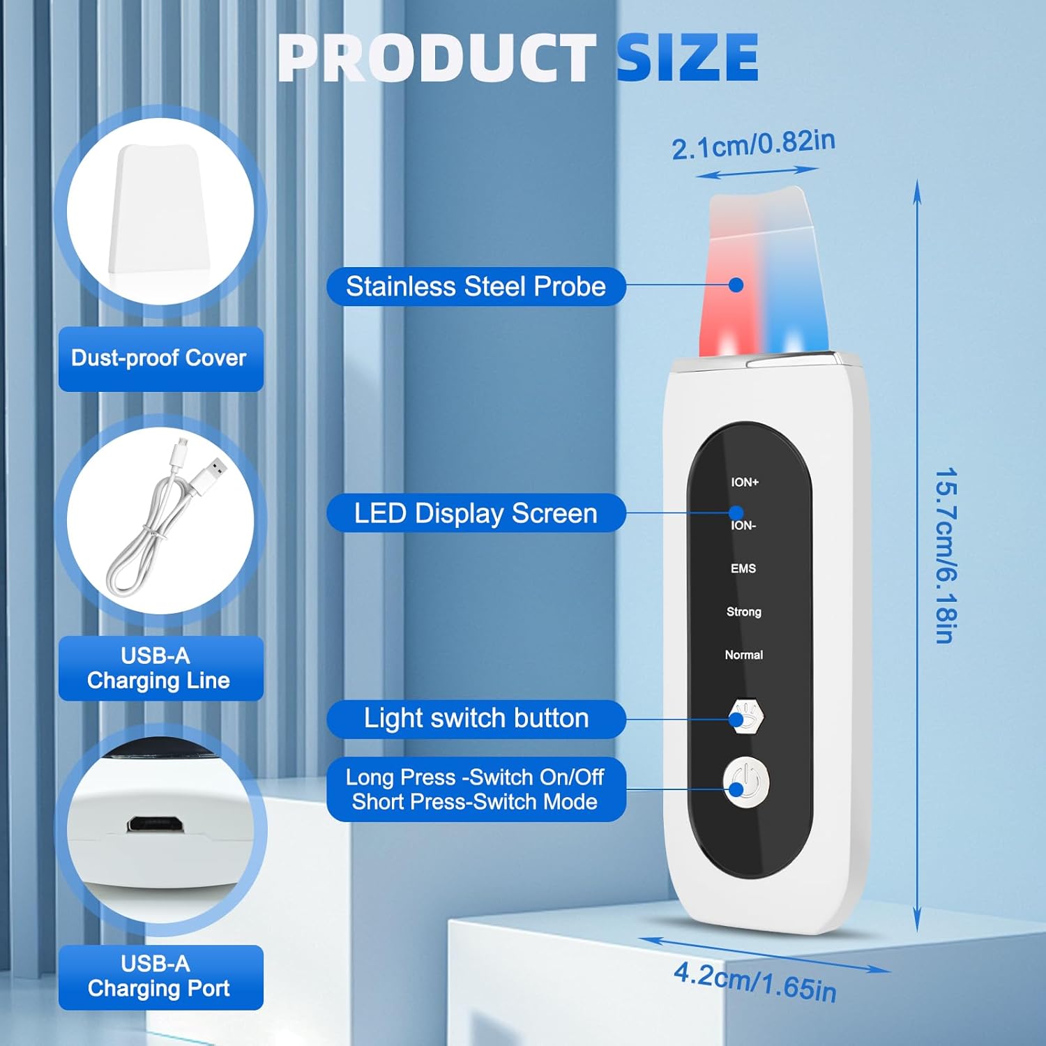 【Uniek ontwerp】Onze gezichtspeeling is uitgerust met een LCD-display dat de huidige gebruiksmodus in realtime weergeeft tijdens het gebruik. De spatel is gemaakt van roestvrij staal, ergonomisch ontworpen voor veilig gebruik, met een hol oppervlak dat zich aanpast aan de contouren van het gezicht en zacht afgeronde hoeken die perfect passen bij de positie van de neus. Dankzij het kleine formaat is hij gemakkelijk mee te nemen en kan hij worden opgeladen via USB , computer, mobiele voeding en andere apparaten.