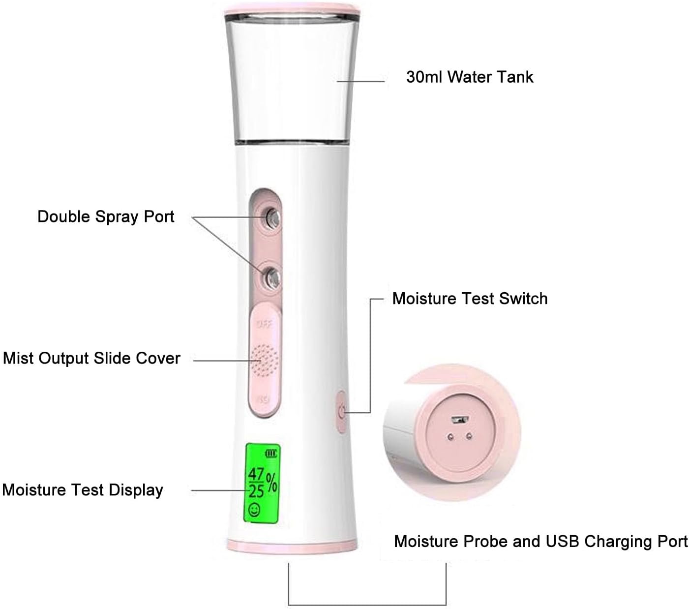 Gezichtsnevelsproeier, 30 ml, hoog volume, dubbel gat, elektrische gezichtsmist, handhuidbevochtiger voor thuis, reizen, 3,7 V, 2 W (roze)