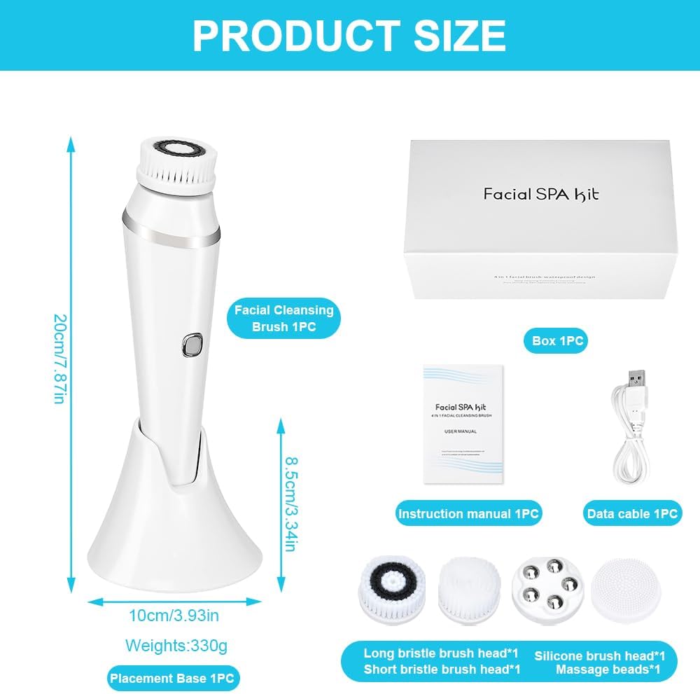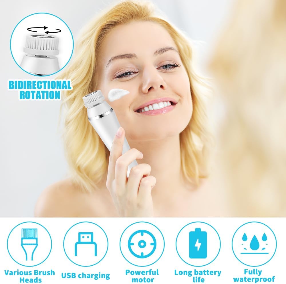 Gezichtsreinigingsborstel, elektrische gezichtsreinigingsborstel met 3 snelheden, 4-in-1 waterdichte gezichtsborstel, spin face brush voor dieptereiniging, peeling en gezichtsmassage