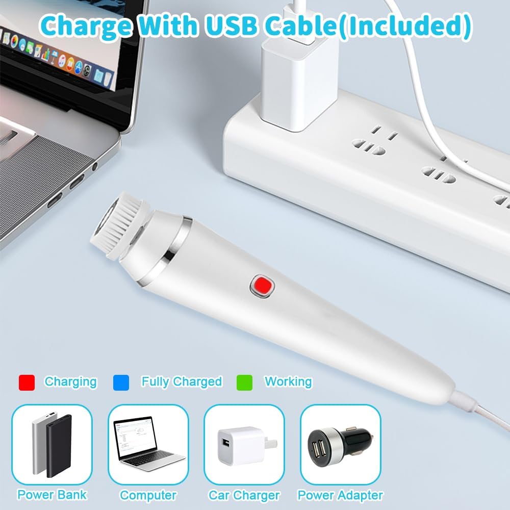 IPX7 waterdicht: onze USB-accureinigingsborstels zijn ontworpen met IPX6 waterdicht, zodat ze in de douche of badkuip kunnen worden gebruikt. Dit maakt de reiniging eenvoudiger en comfortabeler. (Dompel het apparaat niet voor lange tijd onder in water)