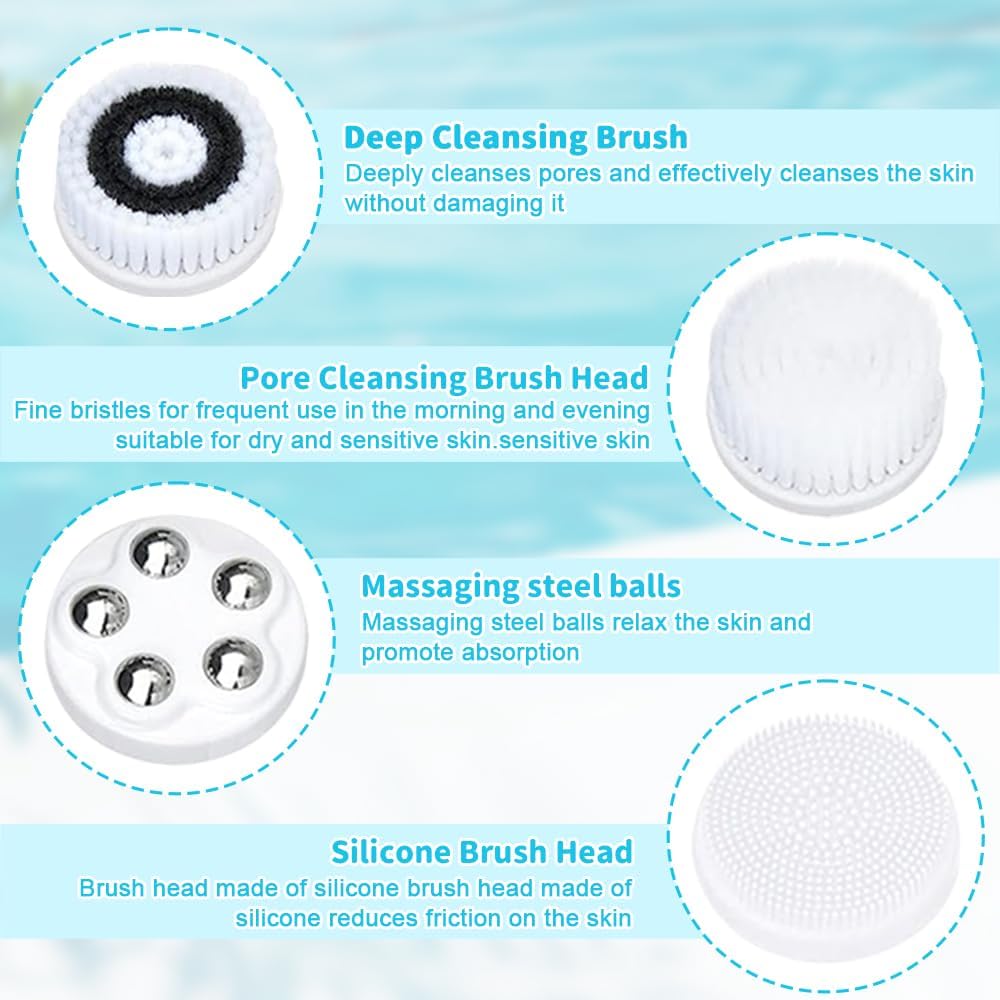 4-in-1 gezichtsreiniger: de Aoreun gezichtsreinigingsborstel wordt geleverd met vier verschillende borstelkoppen, borstelkop met lange borstels, borstelkop met korte borstels, siliconen borstelkop en massagekralen. Het lost vuil, onzuiverheden en olie op en reinigt 10 keer beter dan handen wassen. De aanbevolen gebruiksduur bedraagt 2 minuten per dag. Na een paar weken voelt de huid schoon, stralend en strak aan.