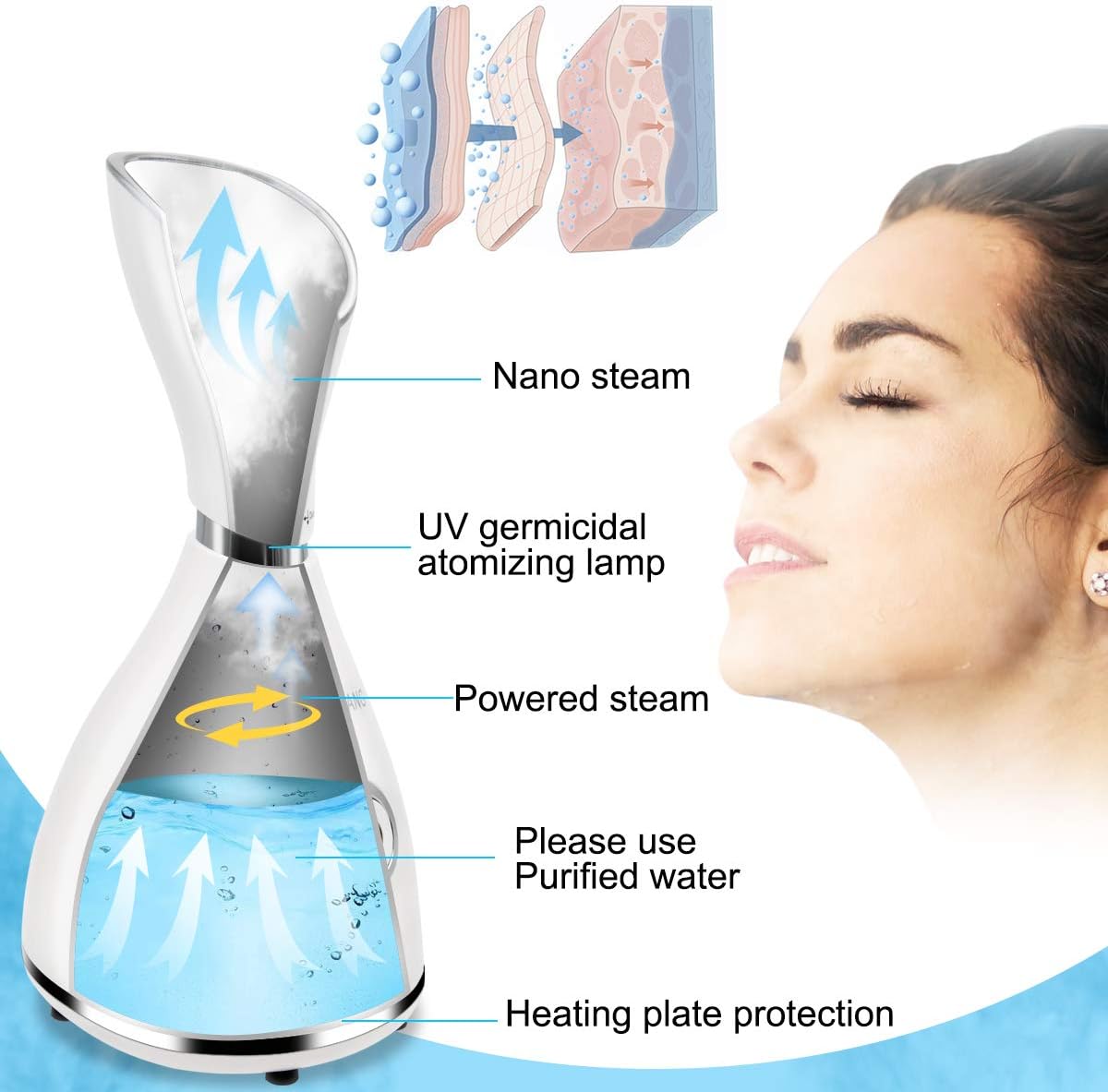 Gezichtsstomer voor poriën, gezichtsstomer Nano Ionic, verbeterde spa warme nevel luchtbevochtiger verstuiver verstuiver voor thuis sauna hydraterende diepe reiniging met mee-eterverwijderaar,