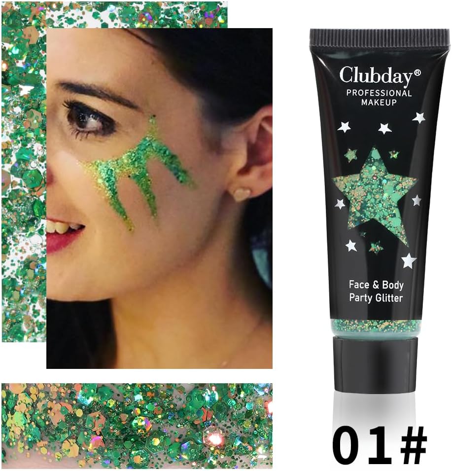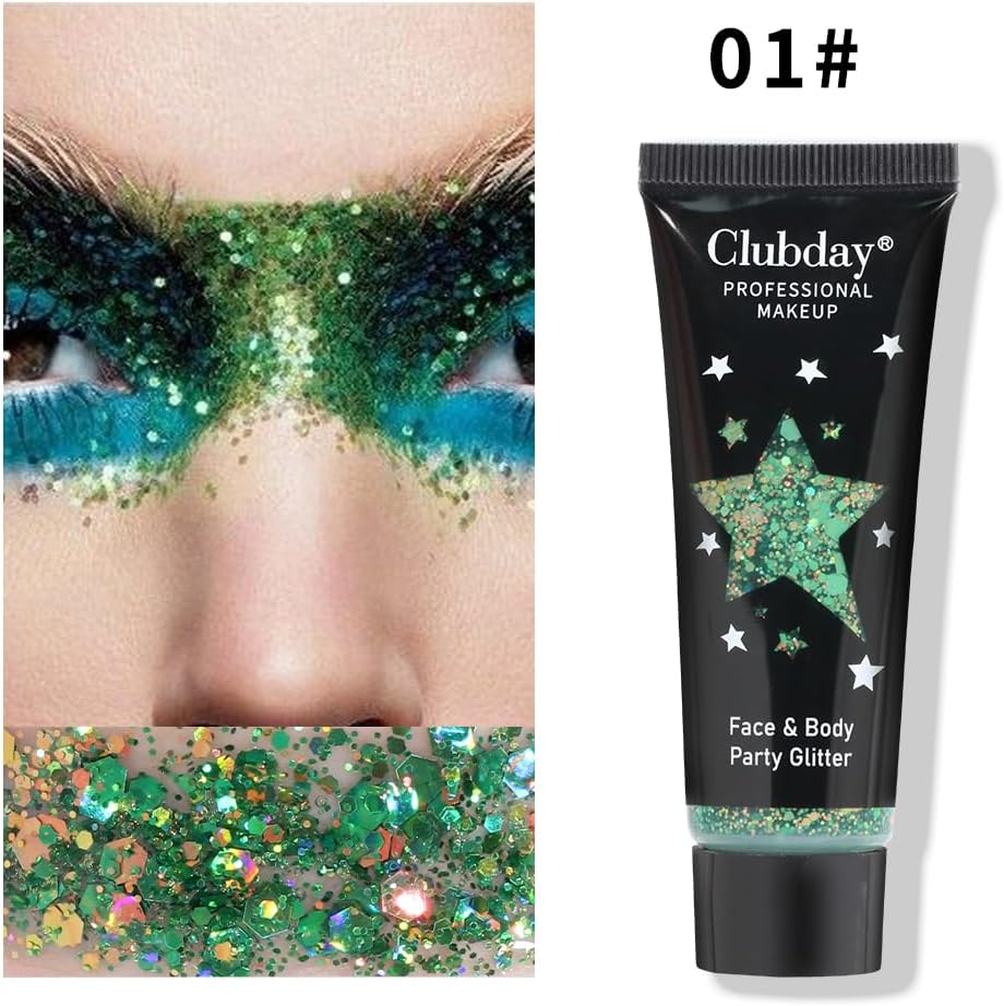 Gl-Turelifes Face Body Glitter Gel pailletten voor ogen, lippen, haar, nagels, gezicht en lichaam met zeemeermin vlokken, Chunky Glitter Festival accessoires, 30 ml (#01 groen)