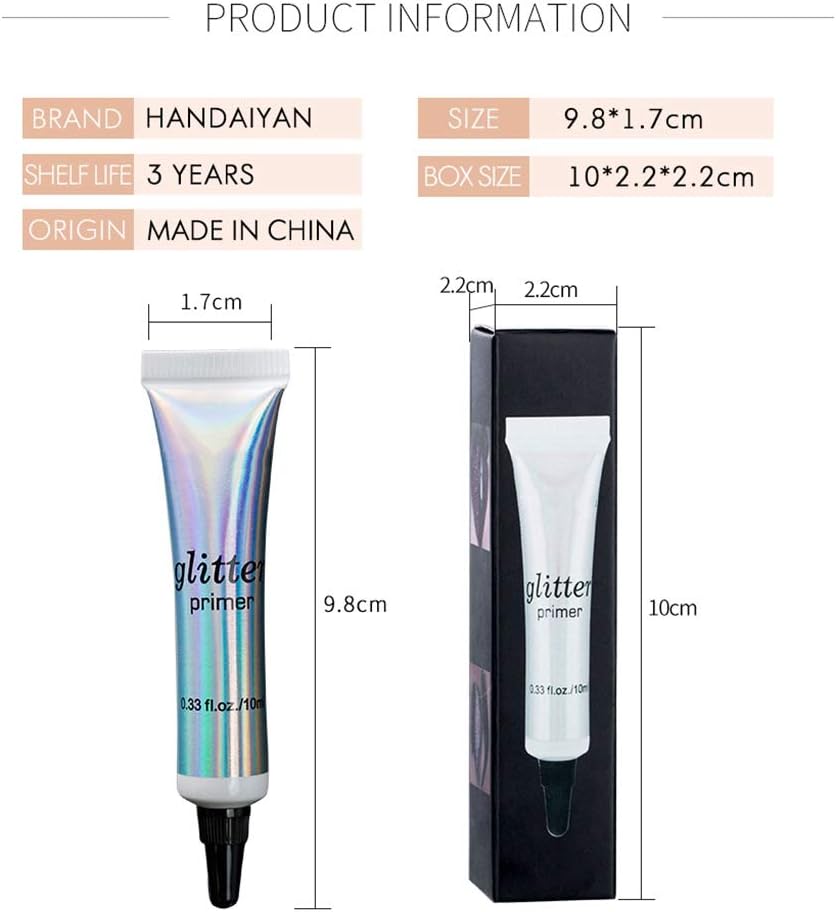 MAAK OOGMAKE-UP LANGER: Een lichtgewicht, gebruiksvriendelijke glitterprimer, speciaal ontwikkeld om onze gezichts- en lichaamsglitters op hun plaats te houden. De oogschaduwprimer kan je een perfecte oogmake-up geven, waardoor oogschaduwpoeder er de hele dag schitterend uitziet.