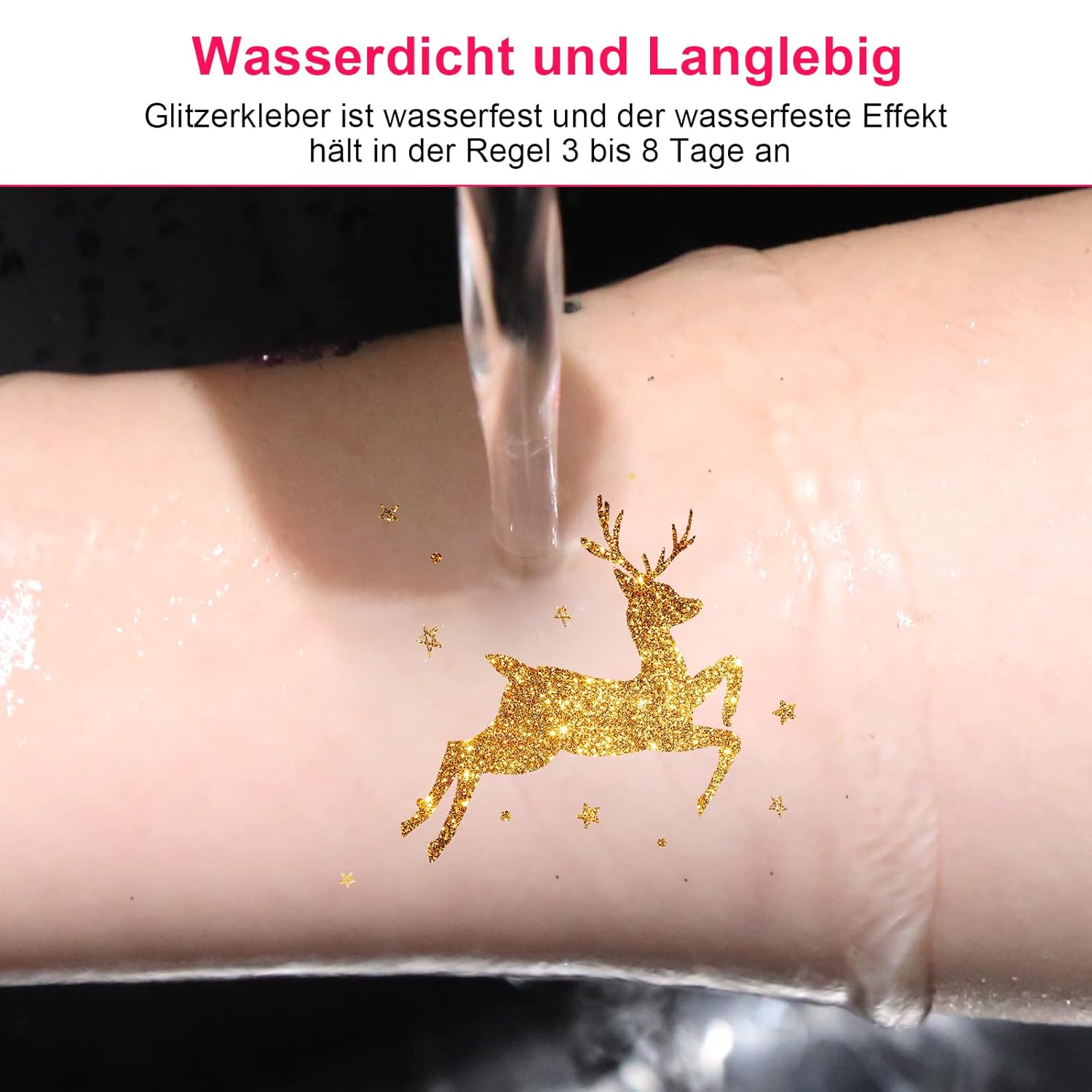 Easy to use: 1. Apply a very thin layer of glue to exposed skin. 2. Remove the sticker etc. so that the glue becomes transparent, wait about 2 minutes; 3. Finally, brush with glitter. It lasts 8-16 days and only needs to be removed with mild soapy water.