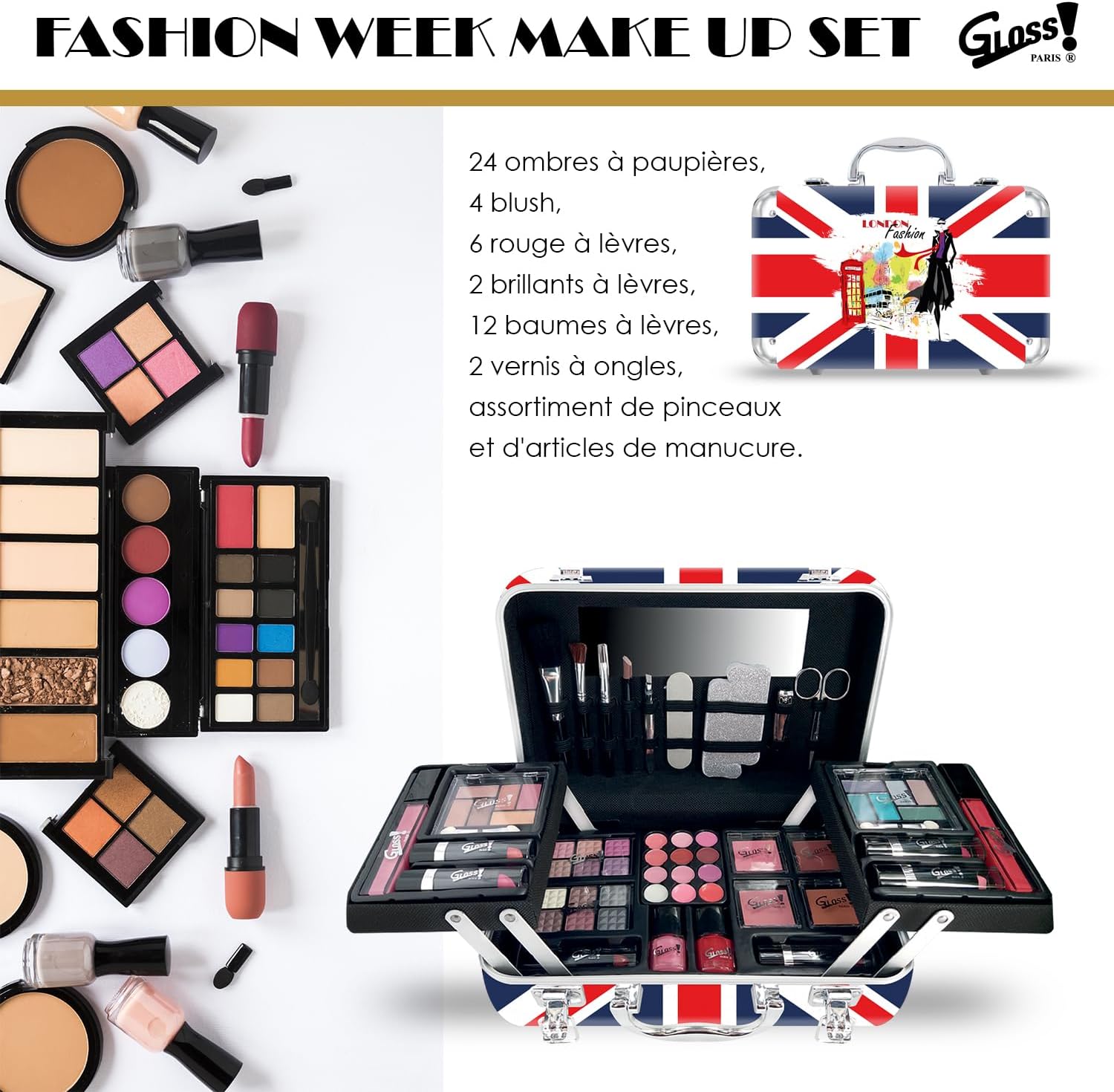 GLOSS! Travel XL make-uppalet voor dames, 60 stuks, blush, oogschaduw, lippenstift, nagellak, accessoires, opbergkoffer, cadeau-idee voor dames