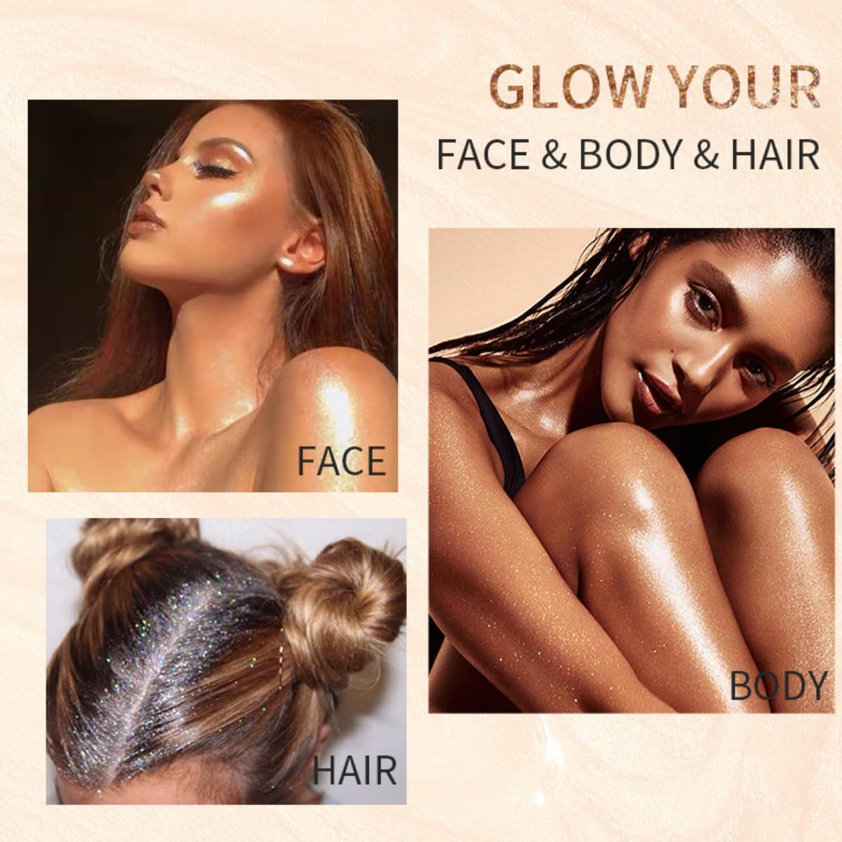 🌺 【Voor lichaams- en gezichtsglow-make-up】 De Glow Highlight Spray kan niet alleen als fixeerspray voor glow-make-up worden gebruikt, maar ook als vloeibare highlight-spray voor lichaam, wangen, hals, benen, sleutelbeen, armen, heupen en andere lichaamsdelen. Ideaal voor dagelijks gebruik, ook voor festivals, carnaval, clubs, feesten, stranden, podiumoptredens, afspraken, bruiloften, dansen enz.