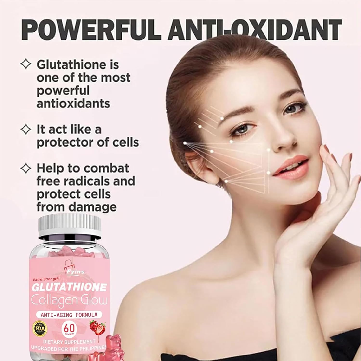 【Glutathione Gummies】Glutathione collagen glow gummies contains 500mg of reduced extra strength glutathione per serving collagen glow high potency gummies form for maximum absorption