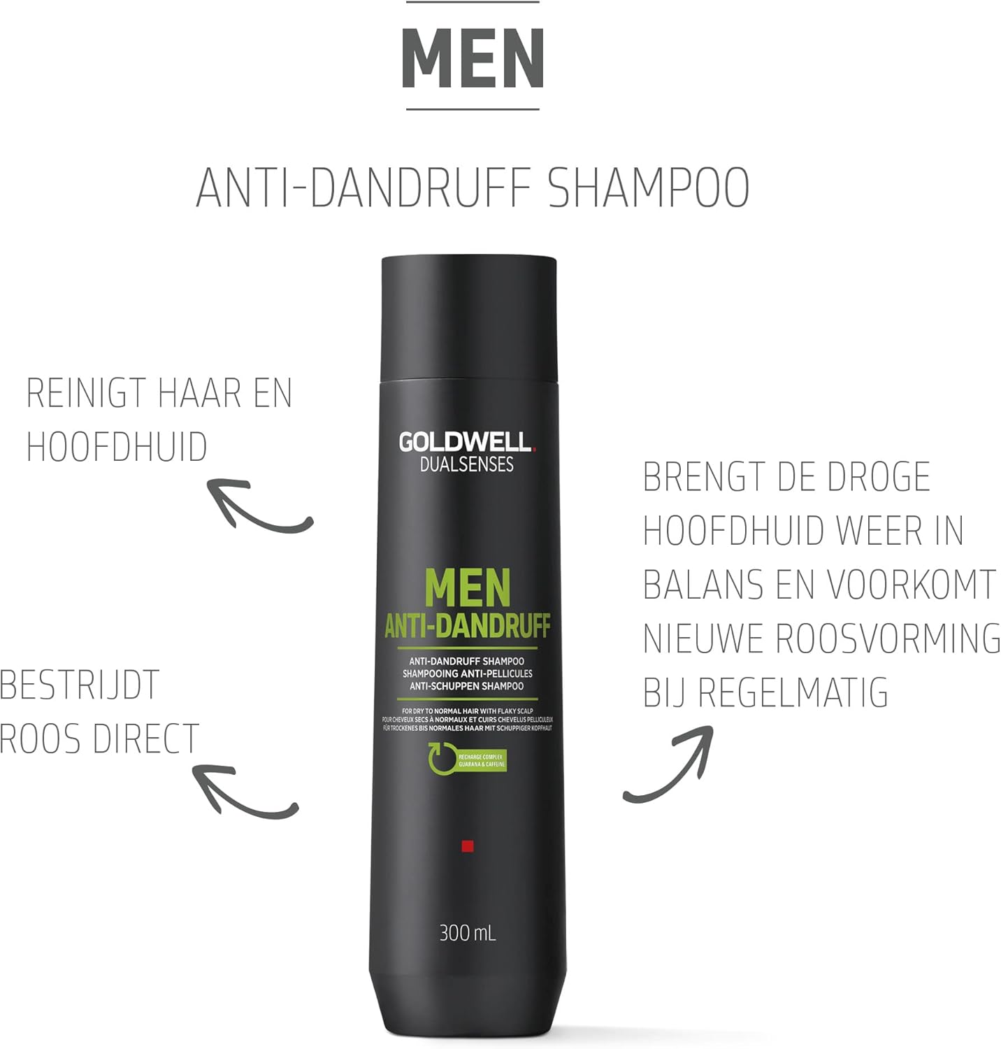 Goldwell Dualsenses Men Anti-Dandruff Shampoo voor droog tot normaal haar met schilferende hoofdhuid, 300 ml