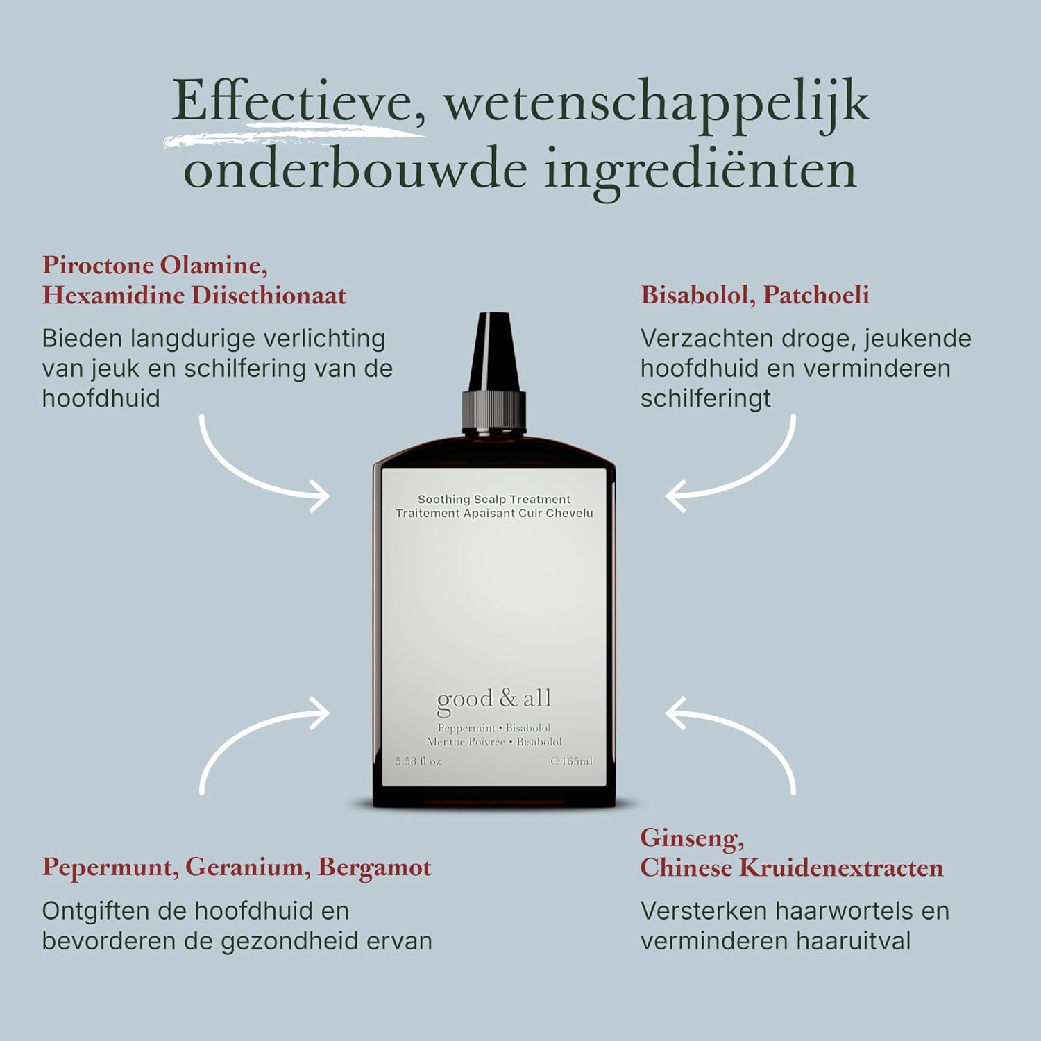 Good&All Hoofdhuid Tonic tegen Roos, Jeuk, Droge, Schilferige Hoofdhuid – Leave-in met Pepermunt en Bisabolol – Zonder Sulfaat, Siliconen en Parabenen – 165ml