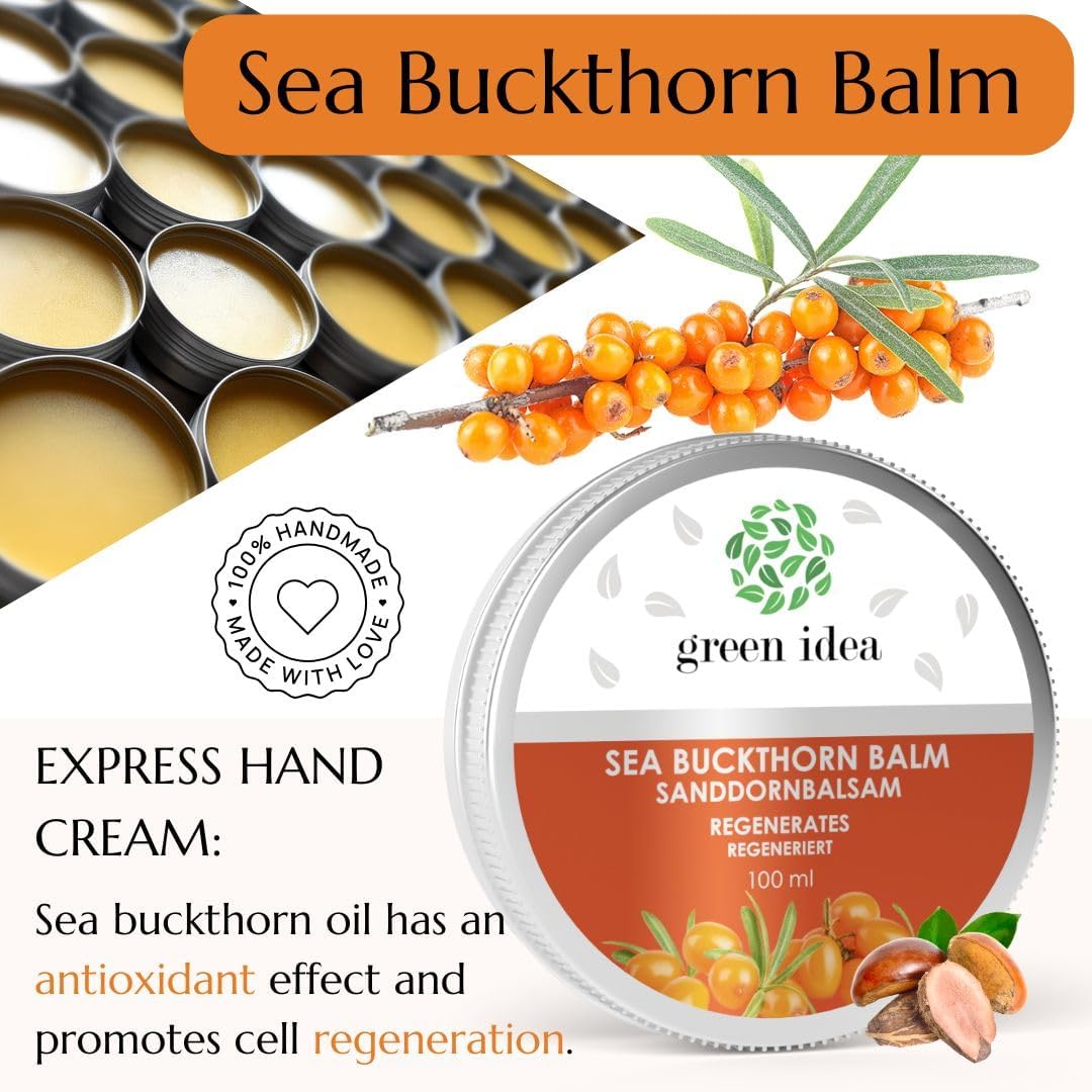 GREEN IDEA Sea buckthorn balm – hand cream – nourishing natural cosmetics moisturizer – intensive protection for skin and nail bed – regenerating and soothing effect 100 ml