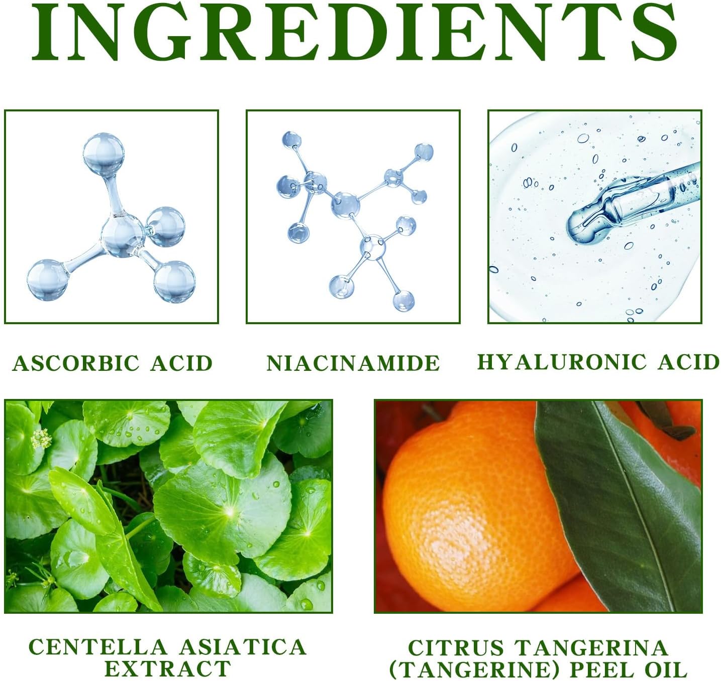 Vitamine C gezichtsserum: verrijkt met hoogwaardige biologische ingrediënten en vitamine C, vult het gezichtsserum de huid aan met de voedingsstoffen die het nodig heeft om de huid te helpen een gezonde conditie te behouden, waardoor huidveroudering effectief wordt voorkomen en het verouderingsproces van de huid wordt vertraagd. Veelzijdig en multifunctioneel: ons vitamine C-serum doet niet alleen wonderen voor je gezicht, maar kan ook op andere delen van je lichaam worden gebruikt. Geeft een jeugdige boost voor nek, borst en handen. Het is als een toverdrank in een fles die een allround revitalisering biedt. Veilig en effectief: ons gezichtsserum met VC is zo geformuleerd dat het veilig en zacht is, geschikt voor alle huidtypes, inclusief de gevoelige huid, waardoor huidproblemen zoals droogheid, donkere vlekken, dofheid, veroudering, enz. effectief worden opgelost. Gebruik twee keer per dag, ‘s ochtends en ‘s nachts, voor een betere, helderdere, elastische en gehydrateerde teint. Fruitwaterserum voor de gevoelige huid: dit is een veilig en zacht vitamine C-serum dat je huid hydrateert en voedt om een frisse en stralende teint te onthullen. Verkwikt de huid zichtbaar en voorkomt irritaties die vaak gepaard gaan met agressieve vitamine-C-sera. Krachtige voordelen: dit vitamine C-serum helpt het verschijnen van fijne lijntjes en rimpels te verminderen en tegelijkertijd de huidskleur en textuur van de huid te verbeteren. Verhoogt de collageenproductie voor een strakkere en vollere huid en biedt een beschermende barrière tegen milieubelastingsfactoren.
