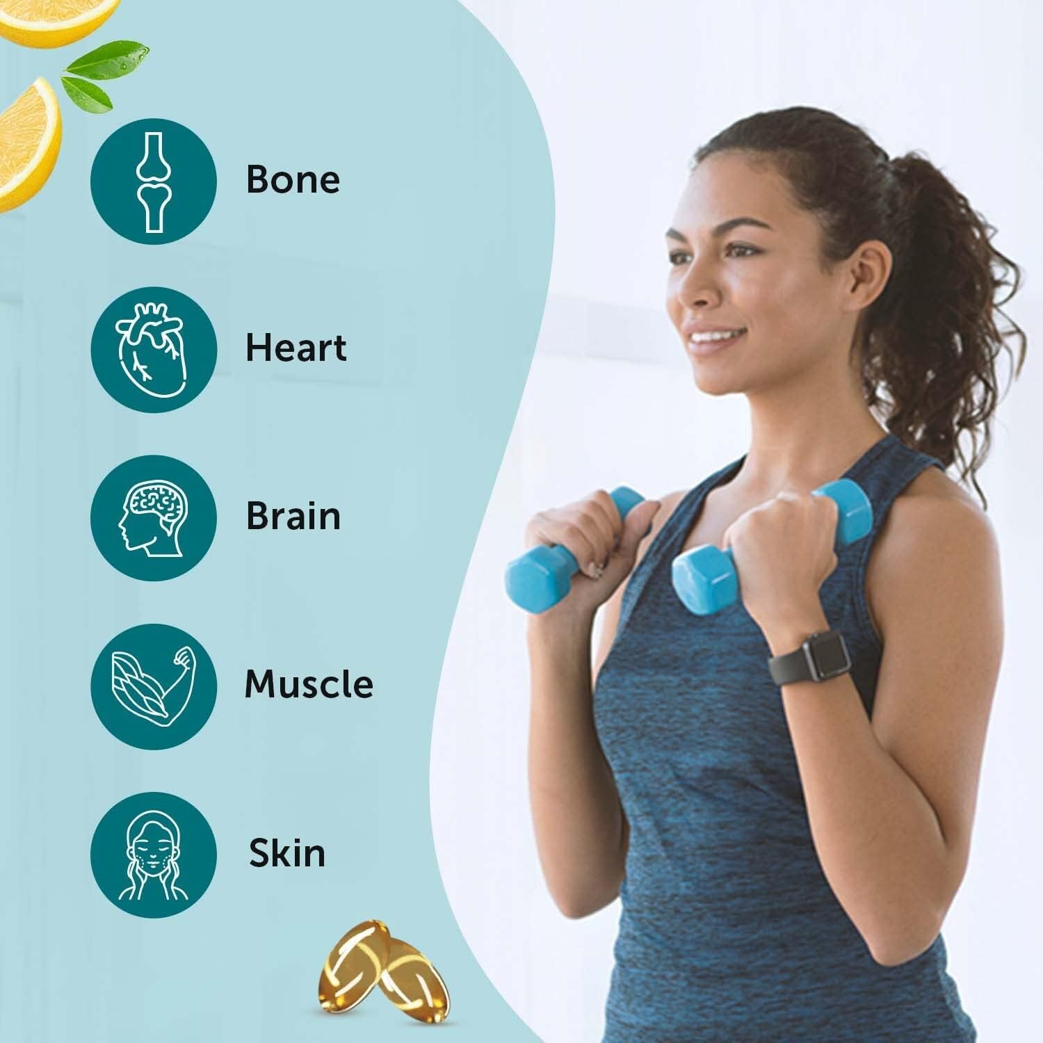 Green Velly Indian Neuherbs Mini Deep Sea Fish Oil gives extra care of 100% RDA of Vitamin D3 which helps boost calcium absorption in the body & provide extra benefits to bones. Omega 3 fish oil helps reduce inflammation, assisting bones with strength & offers a better flexibility & mobility to joints.