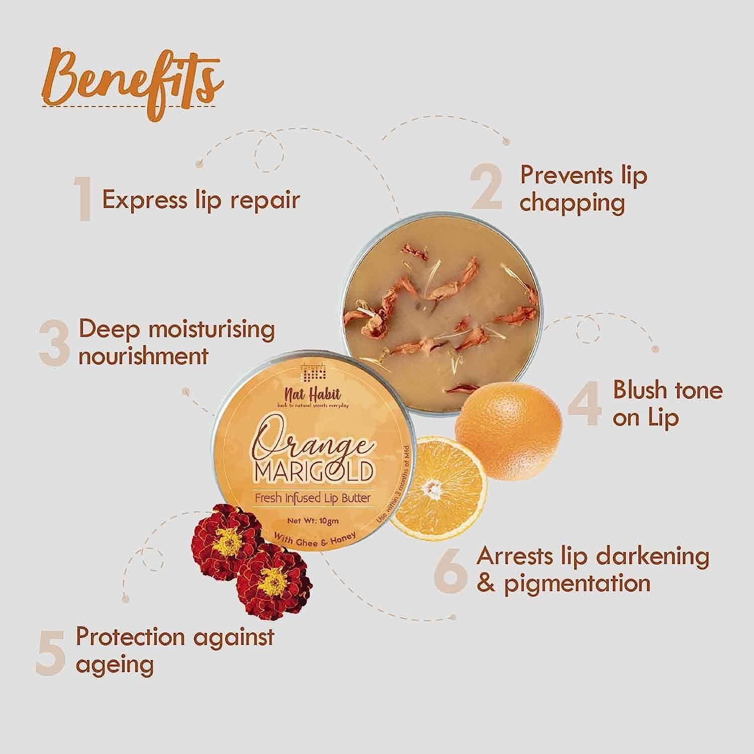 Green Velly Wet Habit Orange Marigold Lip Balm for Lip Lightening, Lip Mask for Dark Lips | Natural, Ayurvedic Lip Care | Fresh Kitchenmade, Desi Ghee, Raw Honey, Shea, Orange Peel, Vitamin E |