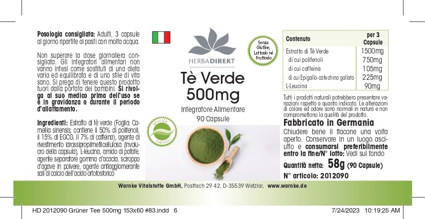 Groene Thee Extract 500mg – 500mg groene thee-extract per capsule – EGCG – Camellia sinensis – min. 50% polyfenolen – veganistisch – 90 capsules | HERBADIREKT – Duitse apothekerskwalitei
