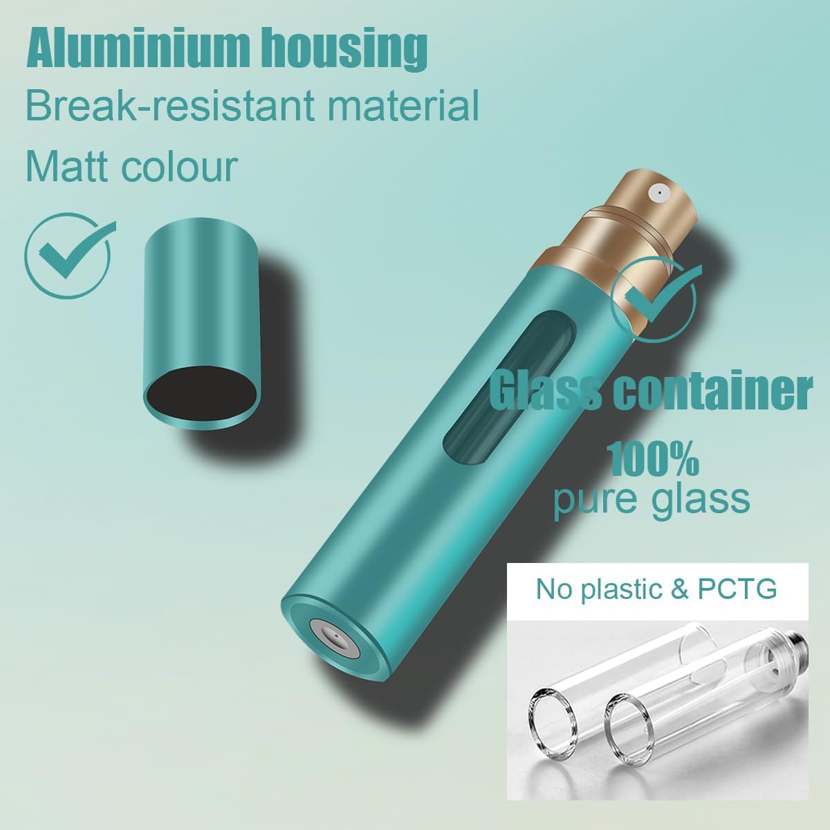GUDECIUS Parfumhouder voor op reis, 8 ml, draagbare parfumverstuiver, navulbaar, met venster, ideaal voor wandelingen, reizen en feestjes (groen)