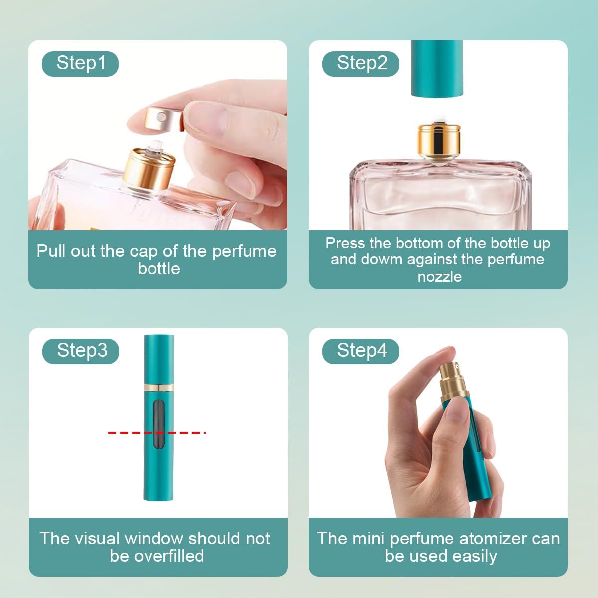 Parfumhouder voor op reis, mini parfumverstuiver, navulbare flessen, parfumhouder, spray met venster, goed voor wandelingen, reizen en feestjes