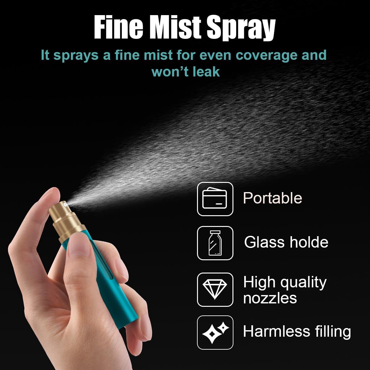 [Hoge kwaliteit]: deze parfumverstuiver is gemaakt van hoogwaardig aluminium en glazen fles, die niet gemakkelijk te verliezen, niet gemakkelijk te krassen of te breken, robuust en duurzaam. Je hoeft je geen zorgen te maken dat de levensduur beschadigd raakt als je hem op de grond valt.